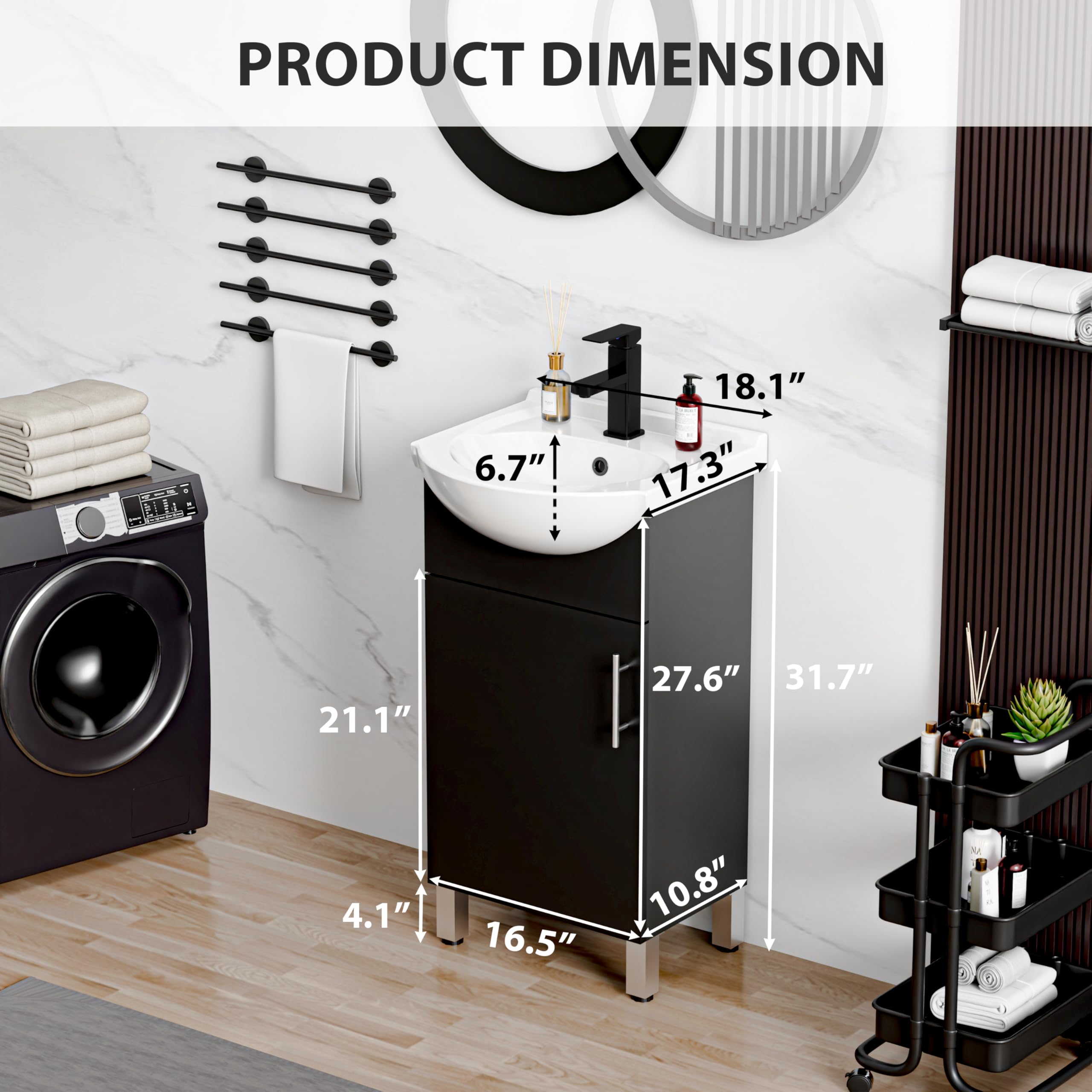 Versatile Use: This laundry sink with cabinet is versatile and can be used in various settings including laundry rooms, bathrooms, utility rooms and kitchens. The cabinet measures 16.5" L x 10.8" W x 31.7" H, with the bowl dimension at 18.1" L x 17.3" W x 6.7" D