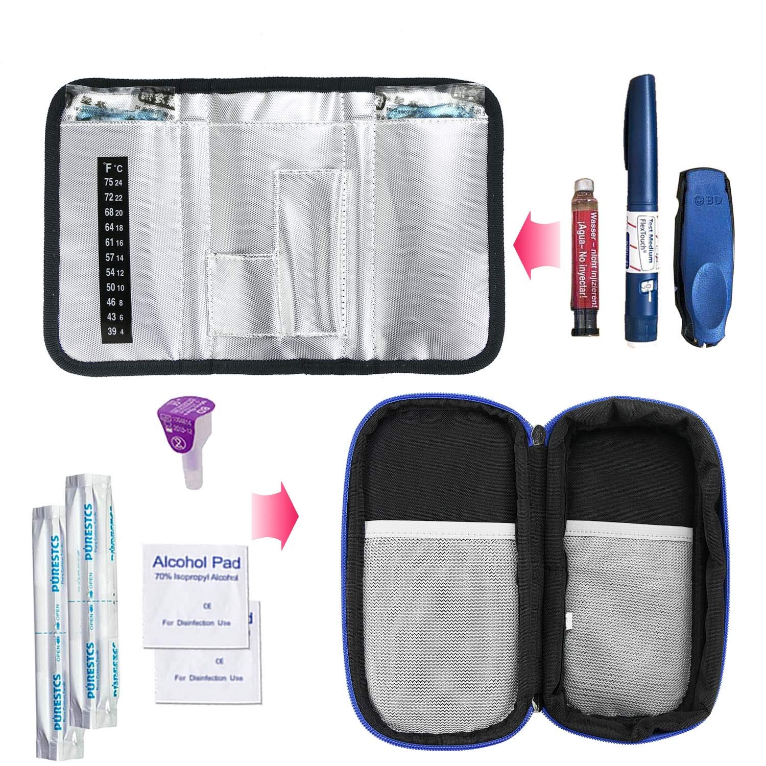 Ideal diabetic insulin cooler travel case for carrying medication diabetes pen or vials and insulin pen needles. Temperature strip shows the temperature. This durable, attractive diabetic supplies travel case organizer is perfect for daily use.