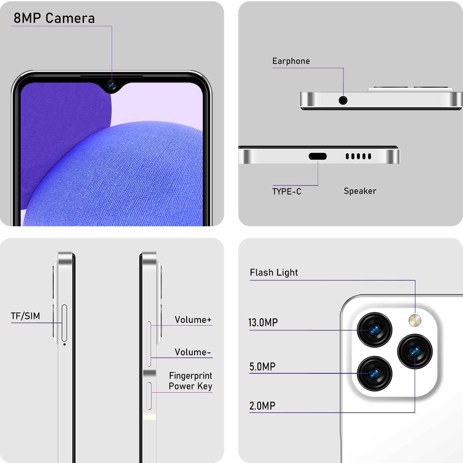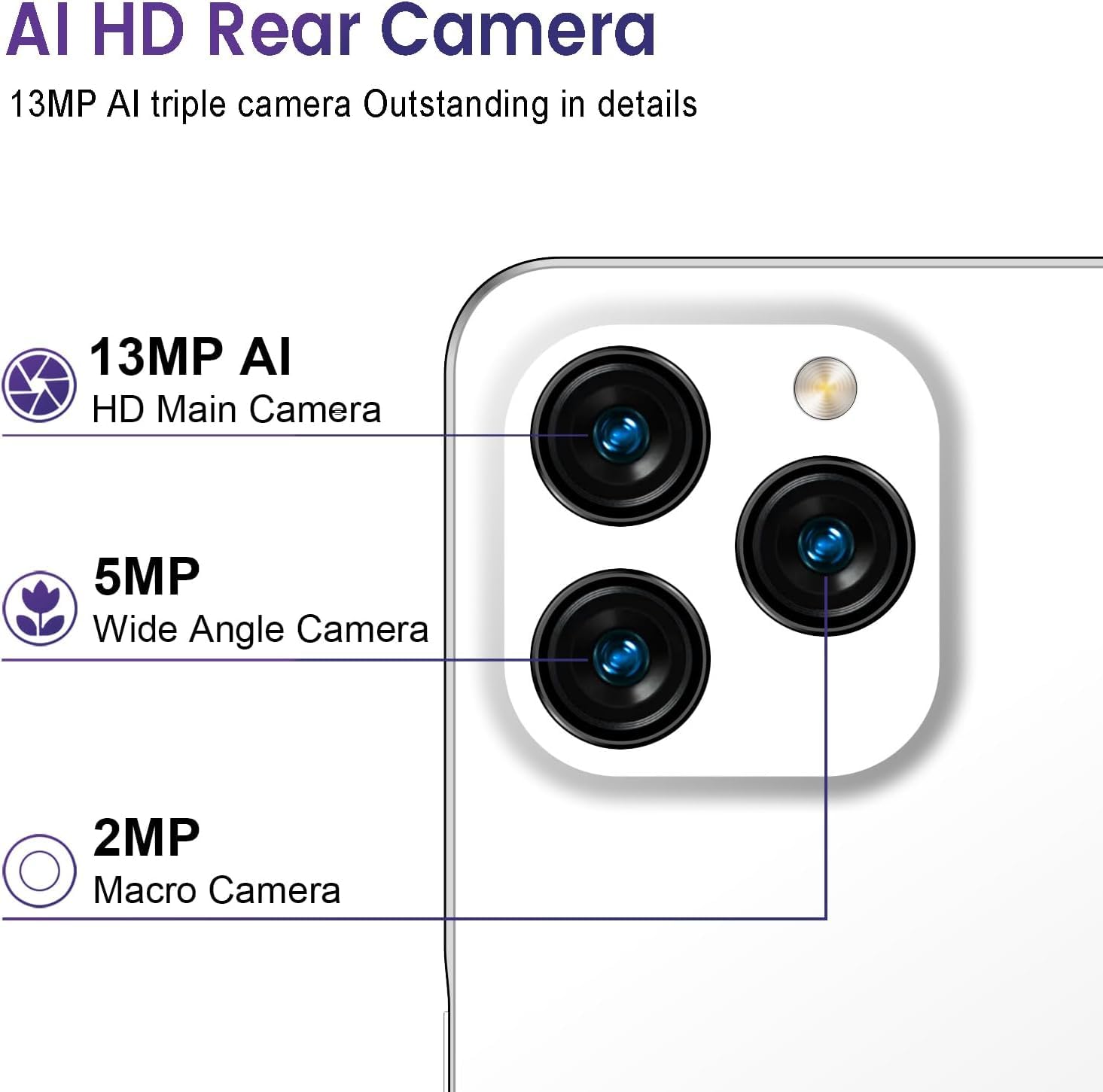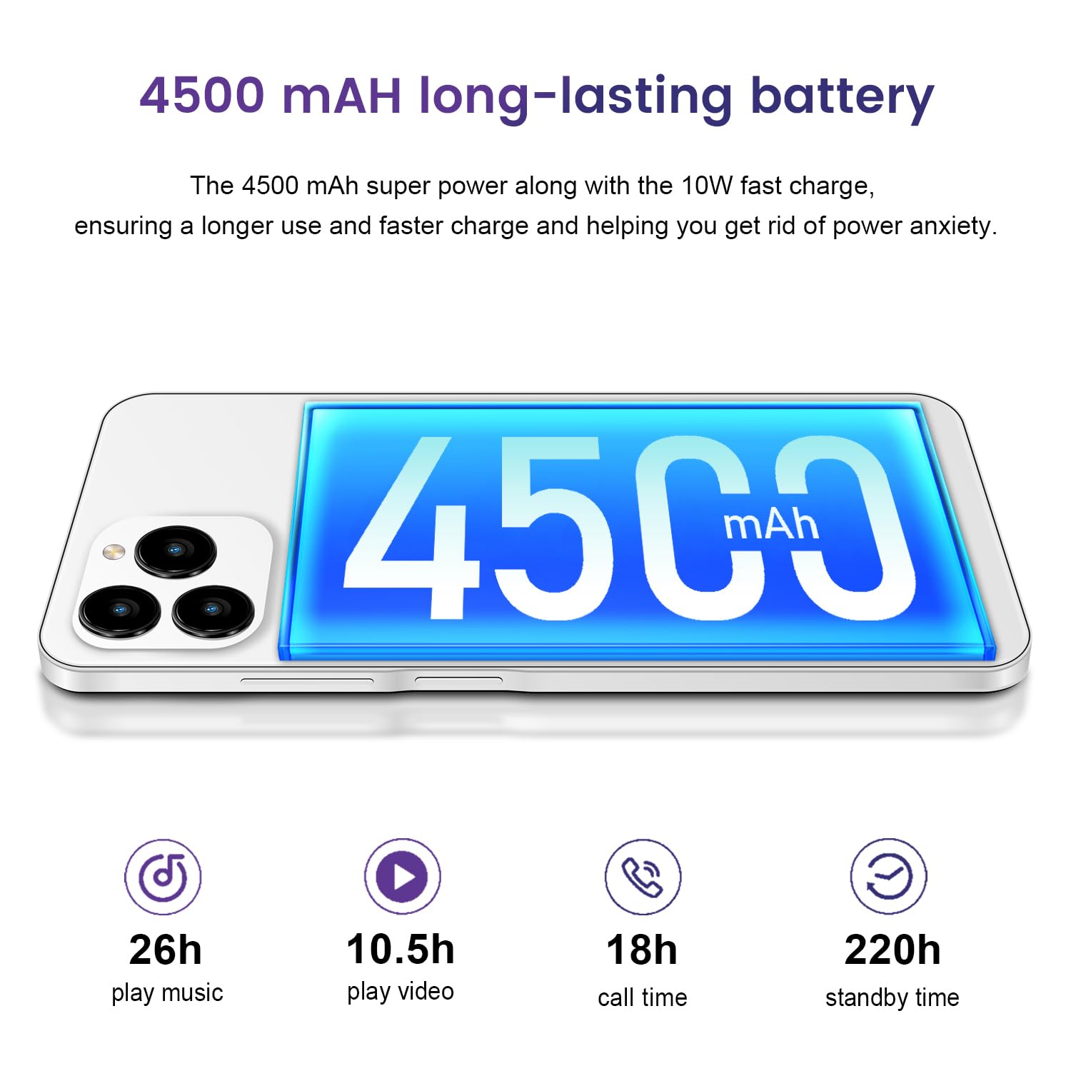 【13MP & 8MP Dual Camera + 4500 mAh battery】The KXD A07 smartphone comes with dual 13MP and 8MP cameras with a front camera for even more beautiful selfies. The A07 Equipped with a 4500 mAh battery, it has a large battery capacity for longer standby time, read messages, watch videos, use GPS and play games.