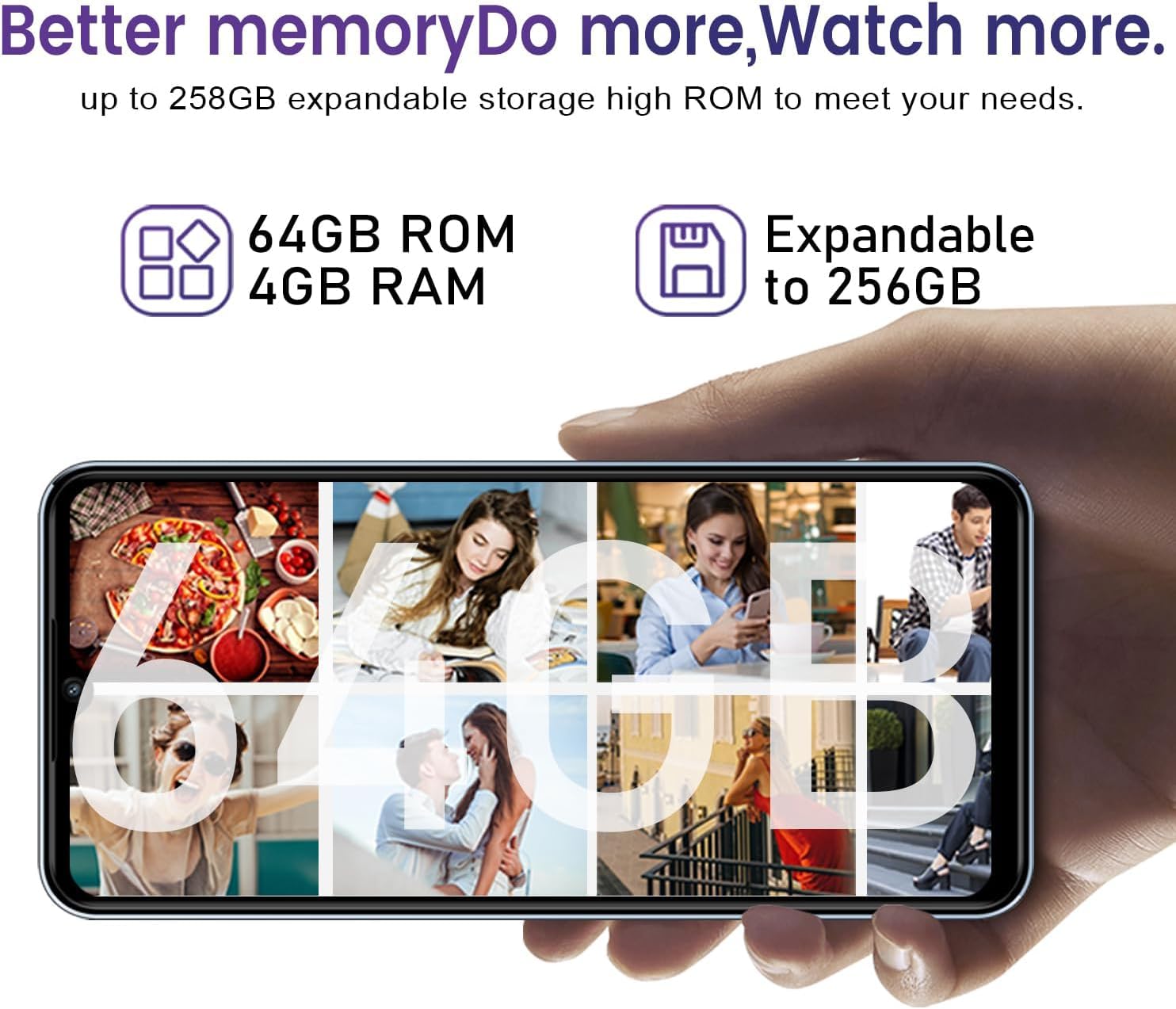 【Andrtaoid 12, 256GB Expandable】Powered by the latest Android 12, the KXD A07 cell phone offers more features than ever before. The KXD A07 mobile phone uses advanced RAM expansion technology to upgrade RAM to 8GB with just one click, allowing you to run multiple applications at the same time and switch easily.In addition, 64GB of memory (up to 256GB) is enough for basic needs, and your smartphone can store more pictures, videos, and apps.