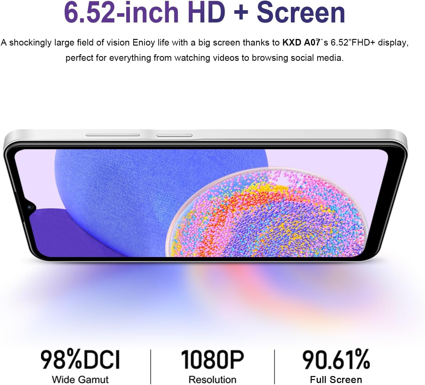 【6.52" Waterdrop Screen】The KXD A07 4G smartphone features a 6.52-inch waterdrop screen with an open view and comfortable grip. The unlocked phone with a large display ensures that the content is fully displayed.