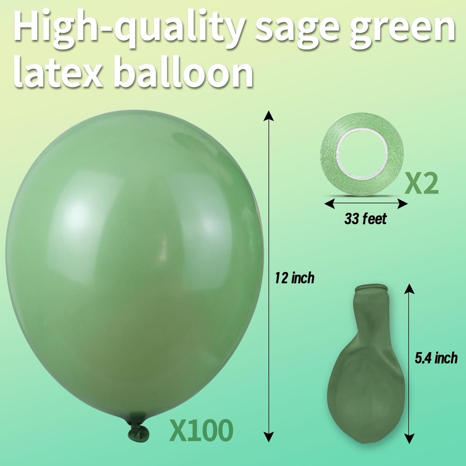 PACKAGE CONTENTS: Set of 100 sage green latex balloons, each measuring 12 inches when fully inflated for consistent party decorations