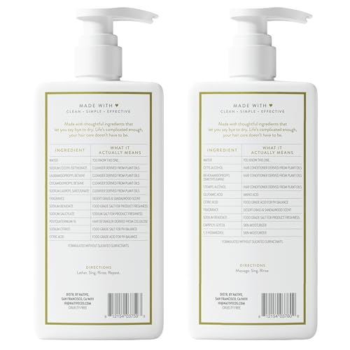 Naturally Derived Ingredients - Native shampoo and conditioner set contains naturally derived and simple ingredients. Made with just 10 thoughtful ingredients that give strength to your strands such as coconut oil derived cleansers, food grade cleansing salts, and citric acid for pH balance. Free of silicone, sulfated surfactants, paraben, and dyes.