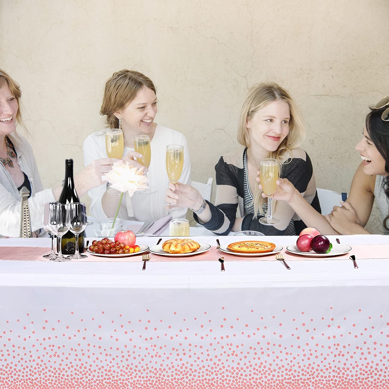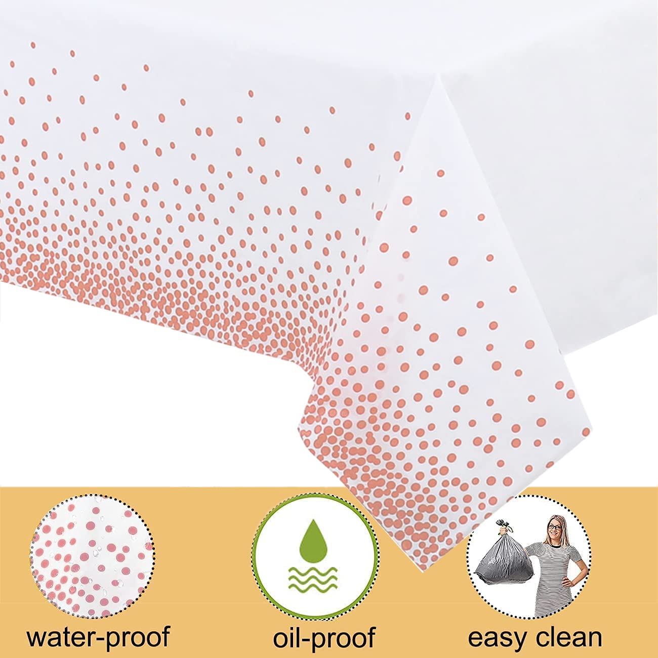 🧊 Clean and Refreshin: These Rose Gold Table Cloths inspire a clean sense of style and class at your next meal or event. In addition, The Disposable Plastic Table Cover elevate the atmosphere of the table and the whole room with gold dot.