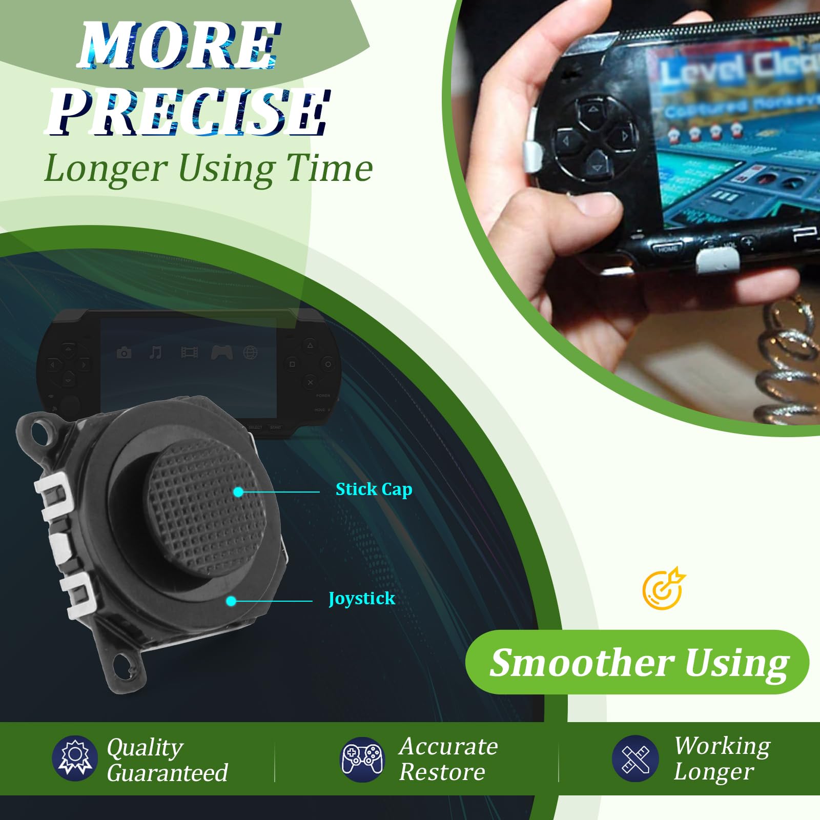 Quality Guarantee: The joystick replacement was test before shipment,and made of good quality, metal+ABS plastic material make it use more accurately and has longer working life. The controller will use as a new one after replacing joystick for PSP 1001.