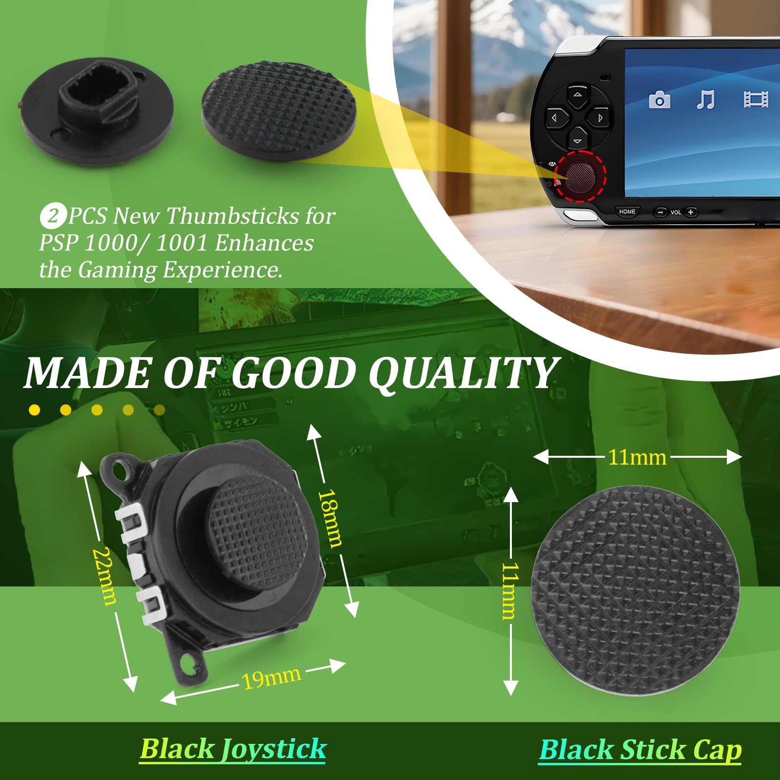 Compatibility: The 2PCS 3D Joysticks is for Sony PSP 1000 1001 joystick replacement. NOT for other model. Please confirm your model before placing the order.