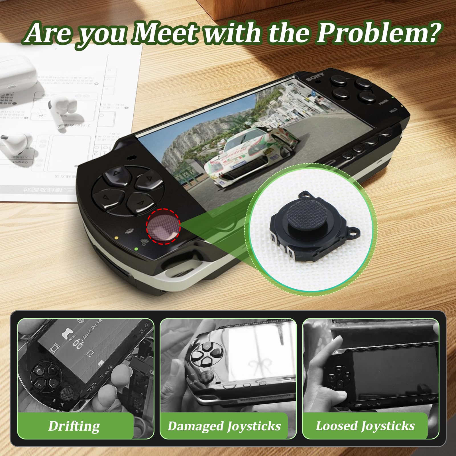 Application: The replacement for PSP 1000 joystick are apply to the problem of the drifting, blind spots, dead spots, can't center, damaged or broken, long time to use, not sensitive, etc. The joystick for PSP 1000 will better to solve the problem of drifting.