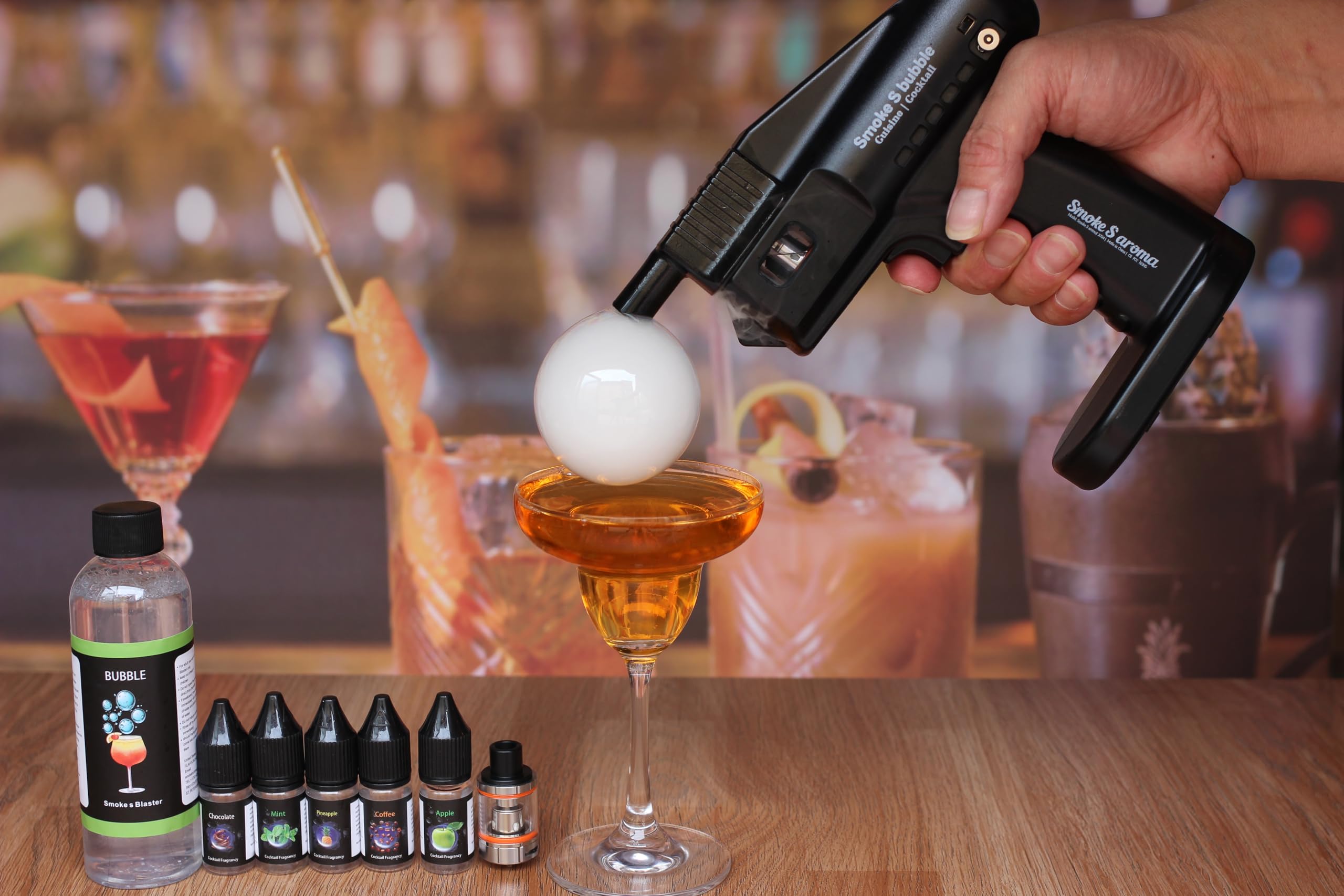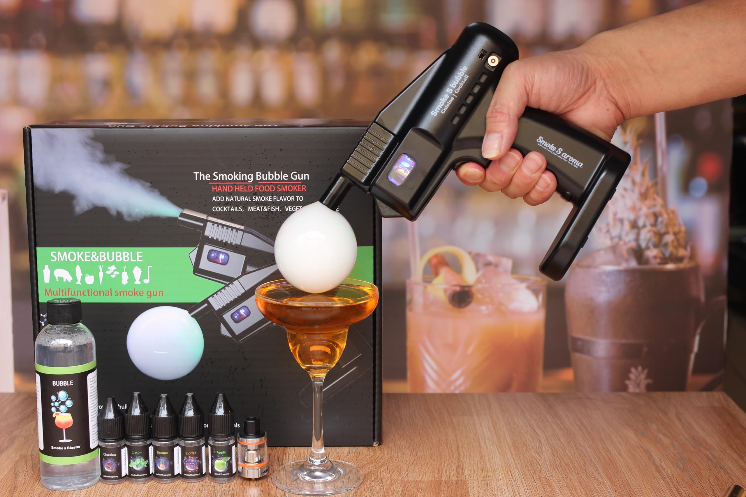 Smoke Bubble Gun is a cutting-edge, innovative cocktail and cooking tool built for professional and amateur bartenders and chefs. This state-of-the-art aromatherapy gun and natural fragrant seamlessly enhance the sensory experience of drinks and dishes. Perfect for creating unique aromatic cocktails and gourmet meals, it features a range of interchangeable aroma boxes such as citrus, vanilla, mixed berries and passion fruit, among others. Its ergonomic design, simple controls and rechargeable battery make it both user-friendly and environmentally friendly. Ideal for anyone keen to improve their mixology or cooking abilities, it offers a novel way to enrich flavors and transform everyday drinks and meals into extraordinary sensory experiences. This device is a revolutionary addition to the gastronomy and bartending world, mesmerizing guests and customers with its innovative aroma enhancement capabilities. Products related to this item Sponsored