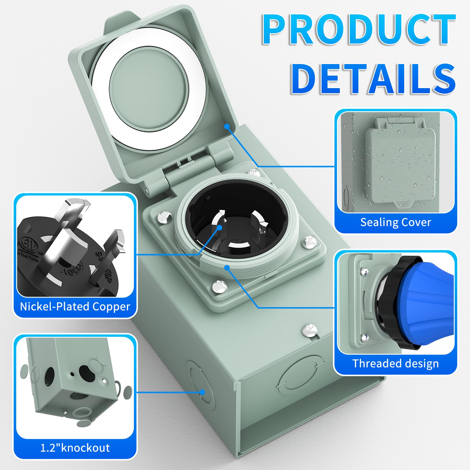 【Threaded Ring Design】It allows locking the plug when using heavy-duty wire to connect generators. Providing a stronger connection and creating a weatherproof connection, ensuring further moisture protection during outdoor use.