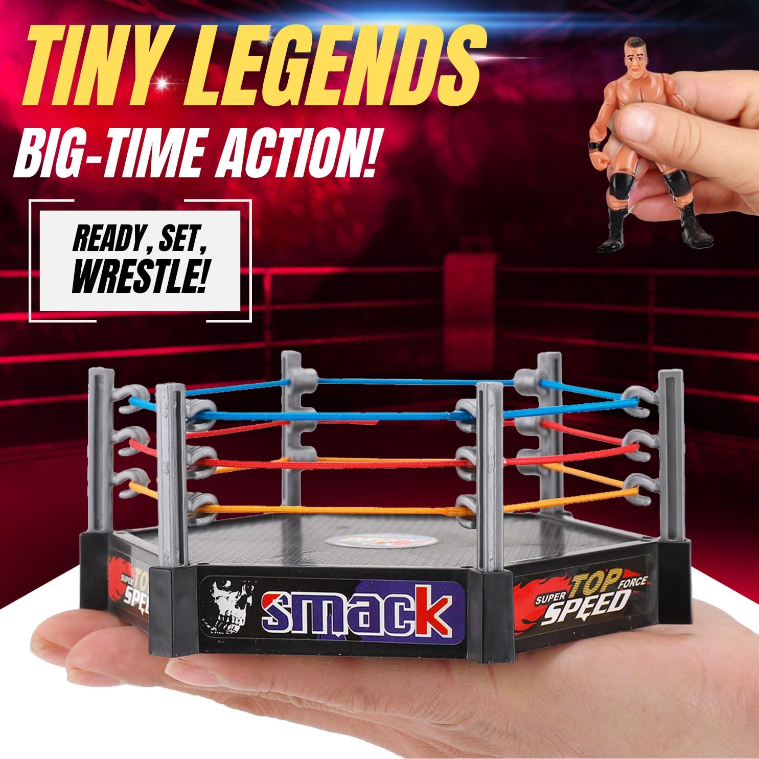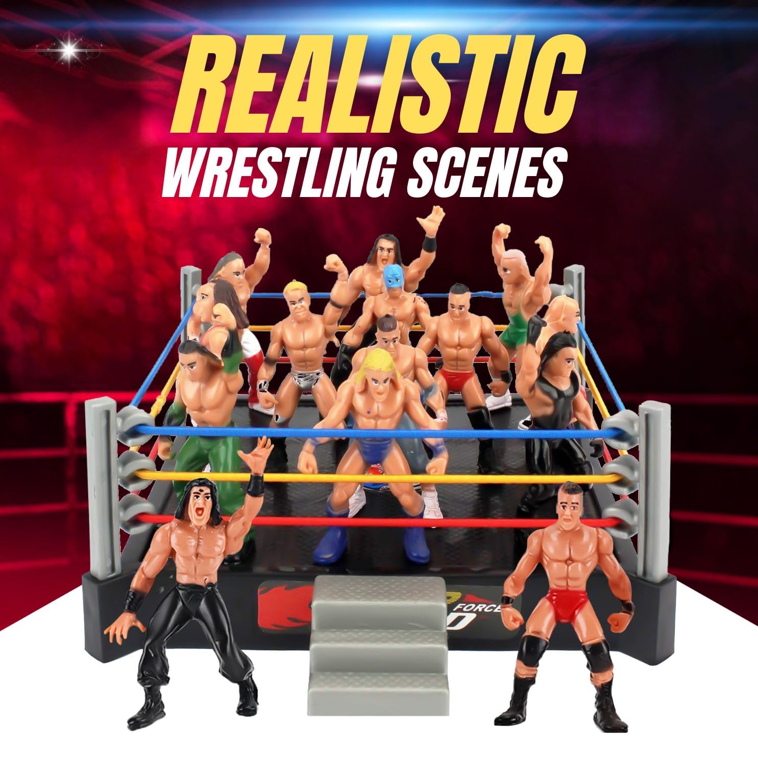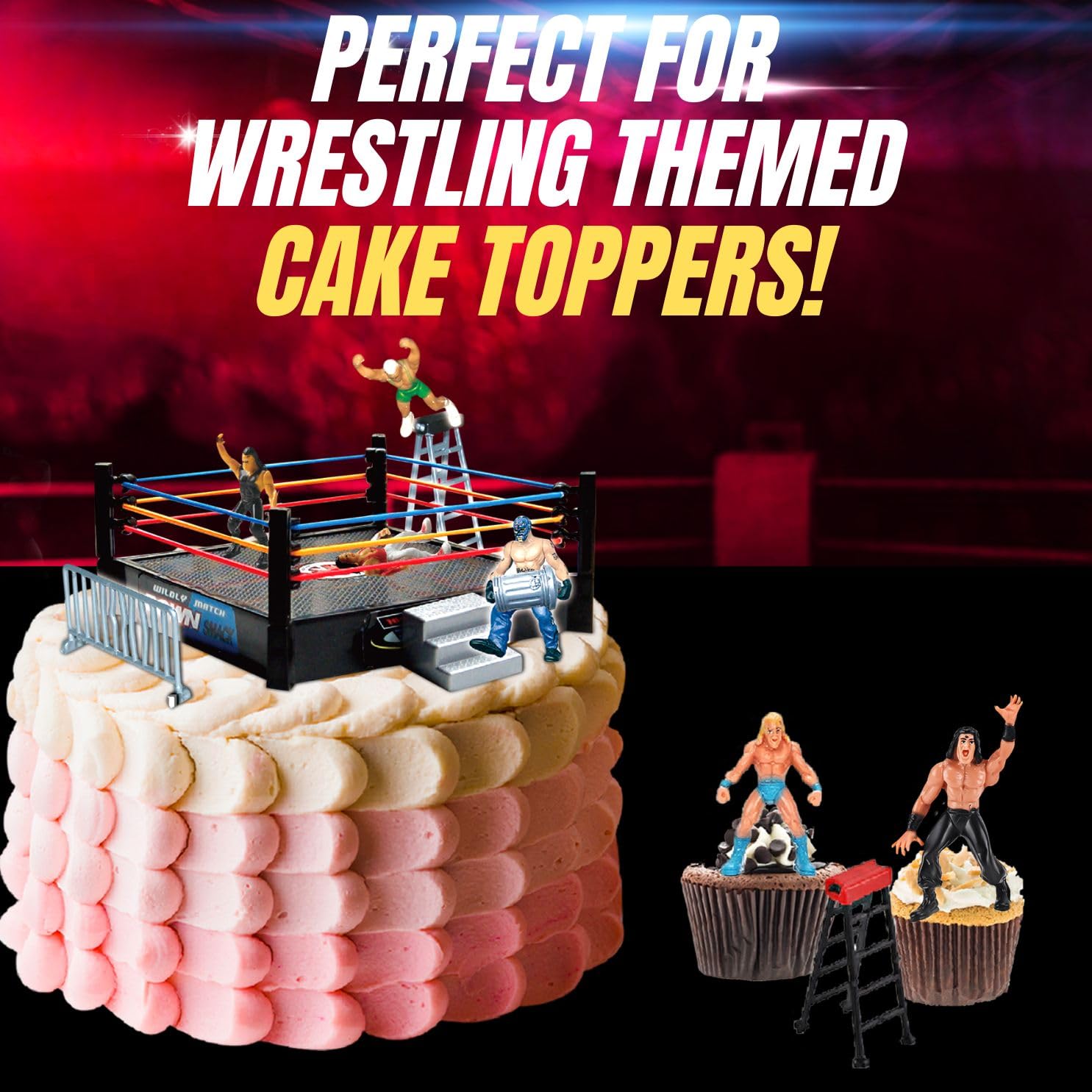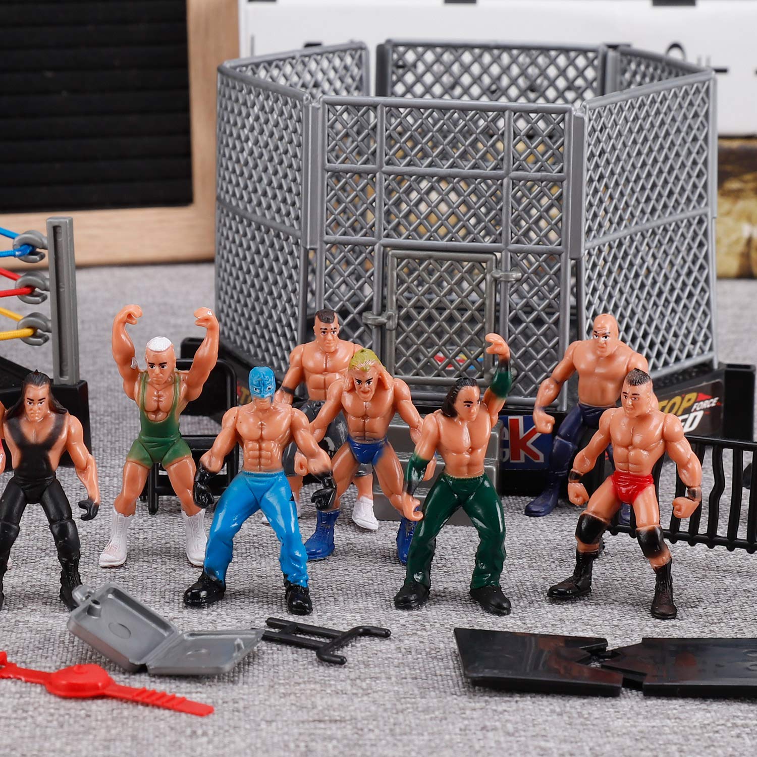 Perfect Size: 12 assorted wrestlers measuring 2" tall; arena size is 5" x 5", ideal for tabletop displays or cake toppers