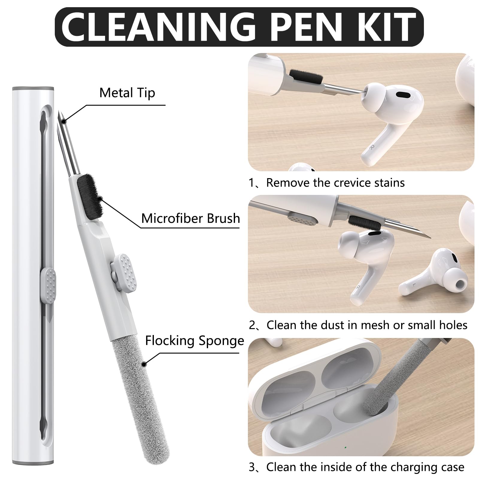 3 in 1 Cleaning Pen: The cleaning pen with metal pen tip, soft brush and the high-density Flocking brush,Can help you remove dust and dirt from your headphones,Always keep your AirPods as new