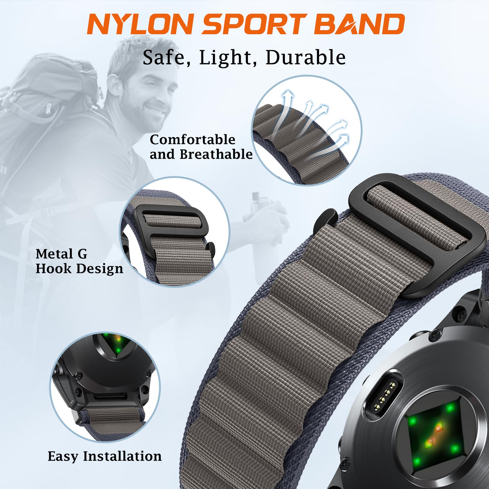 Compatible Models: ShinKin QuickFit 26 mm Nylon Trail Loop Strap for Garmin Fenix 8 Pro 47mm/Garmin Quatix 8 47mm/Garmin Forerunner 970 /Garmin Tactix 8 51mm/Garmin Fenix 8 51mm/Fenix 8 Solar 51mm/Fenix 7X/Fenix 7X Pro/Fenix 7X Pro Sapphire Solar/Fenix 7X Solar/Fenix 7X Pro Solar/Fenix 6X/Fenix 6X Pro/6X Solar/5X Plus/5X/3/3 HR, Enduro 3/2/1, Tactix Delta/Tactix Delta Solar/Tactix 7/Tactix 7 Pro, D2 Charlie/D2 Bravo/D2 Delta PX. Compatible with all QuickFit 26 mm smartwatches