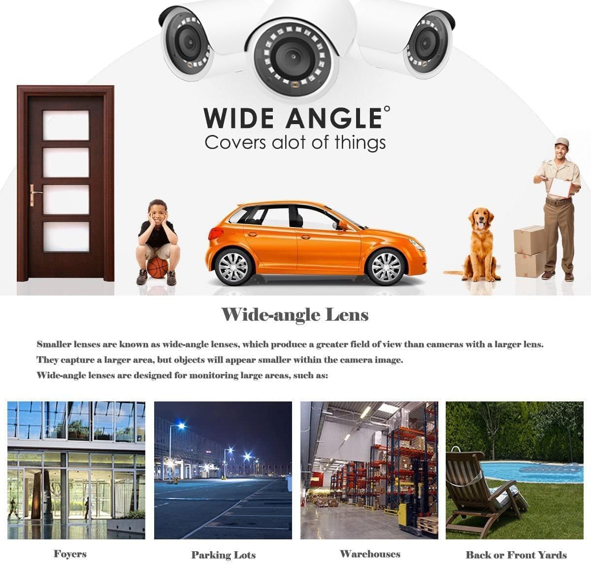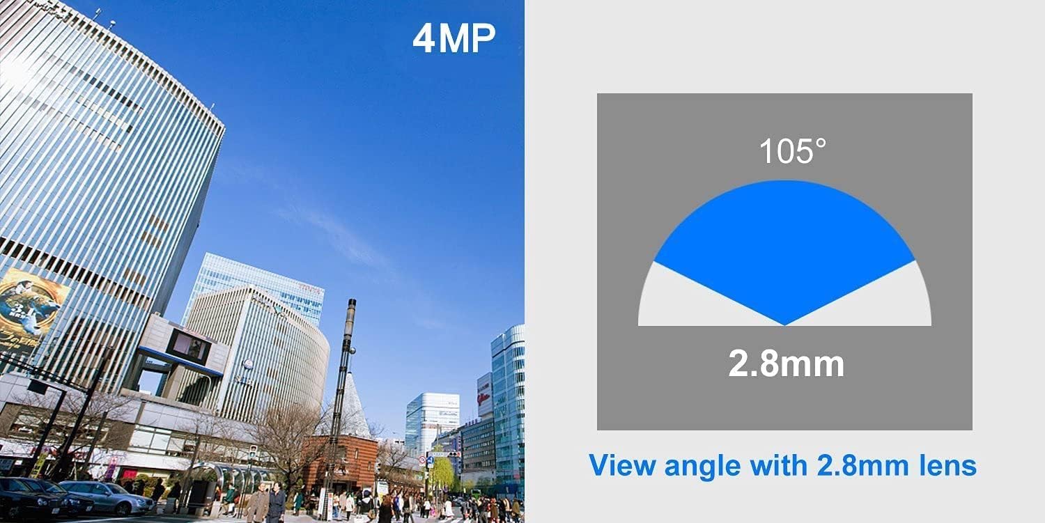 【IP66 Weather Rated Enclosure and 2.8mm Wide angle lens】Ideal for indoor and outdoor applications. With a wide range in operating temperatures, it is designed to withstand summer and winter temperatures and protected from dust and rain. The 2.8 mm fixed lens on this camera offers an impressive 105° field of view to cover a wider area.