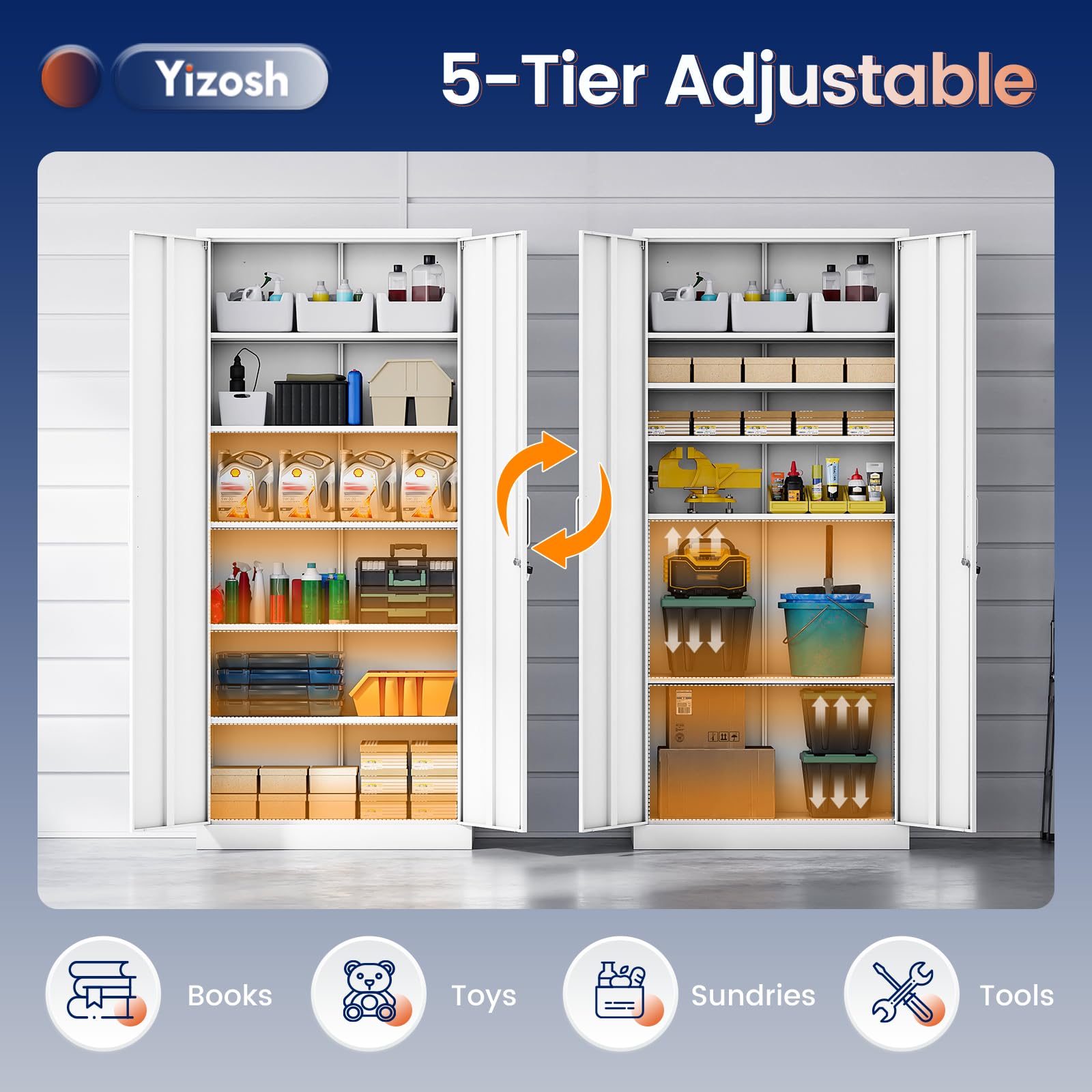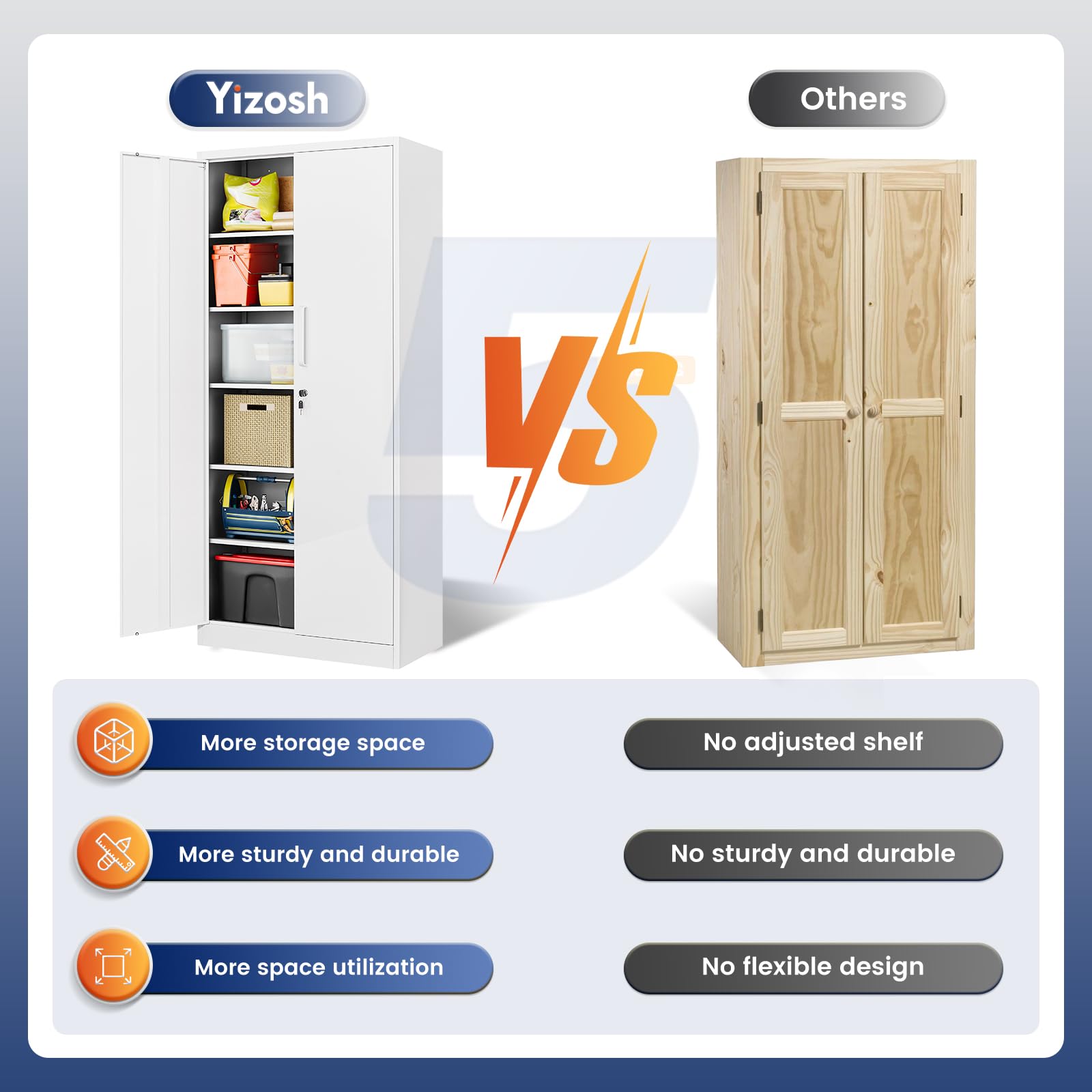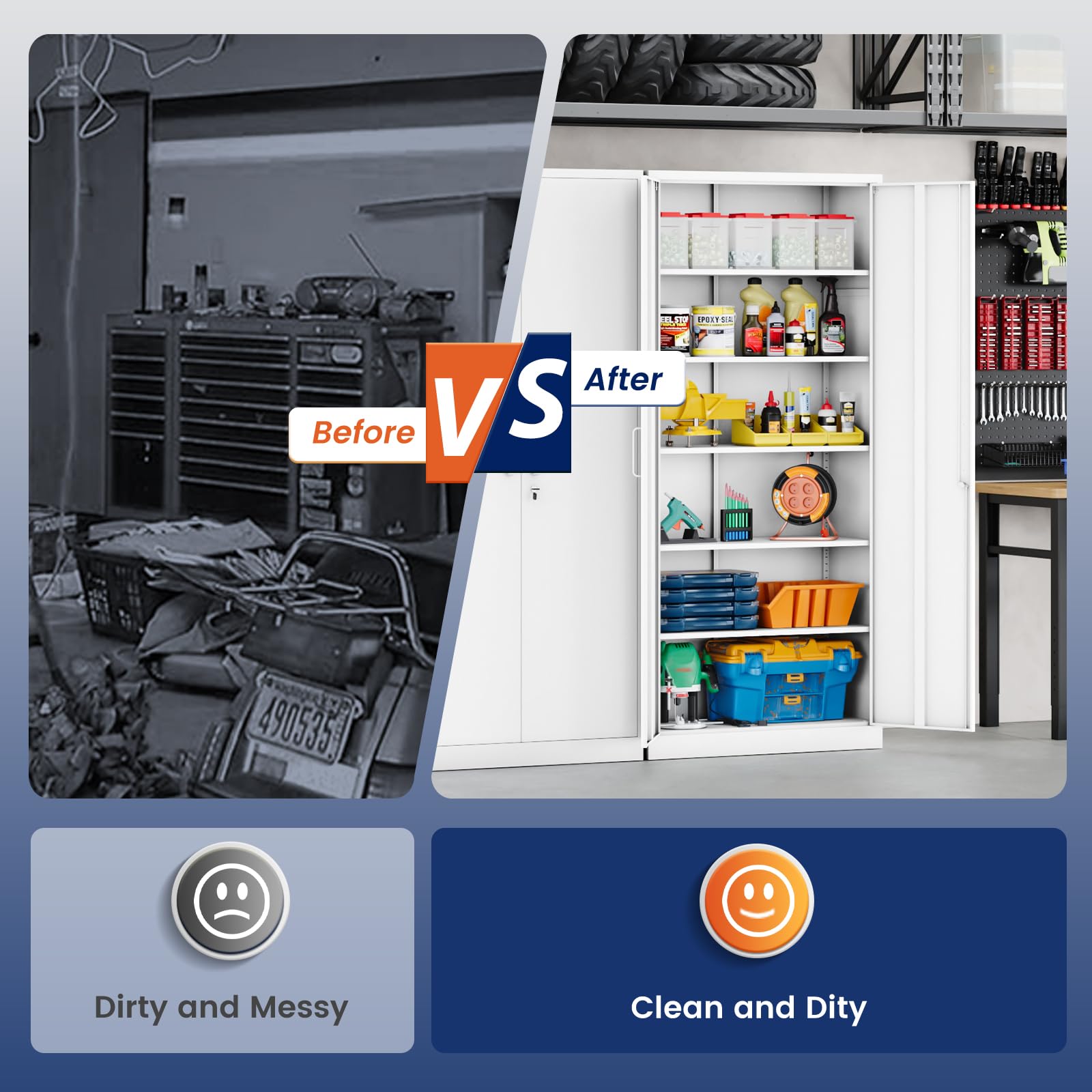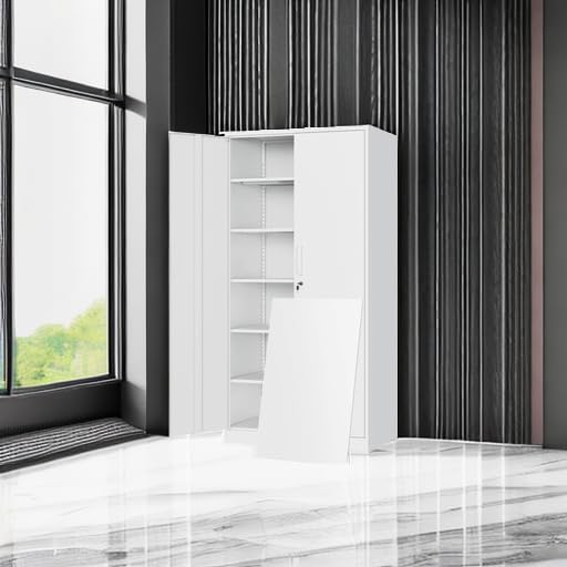『PRACTICAL DESIGN』:Our tall metal cabinet equipped with lock and 5 adjustable shelves to provide adaptability and convenience. High-grade lock picking to secure valuables, two keys are included. Regardless of what your storage needs are, you have the ability to create a unique storage space to suit them.