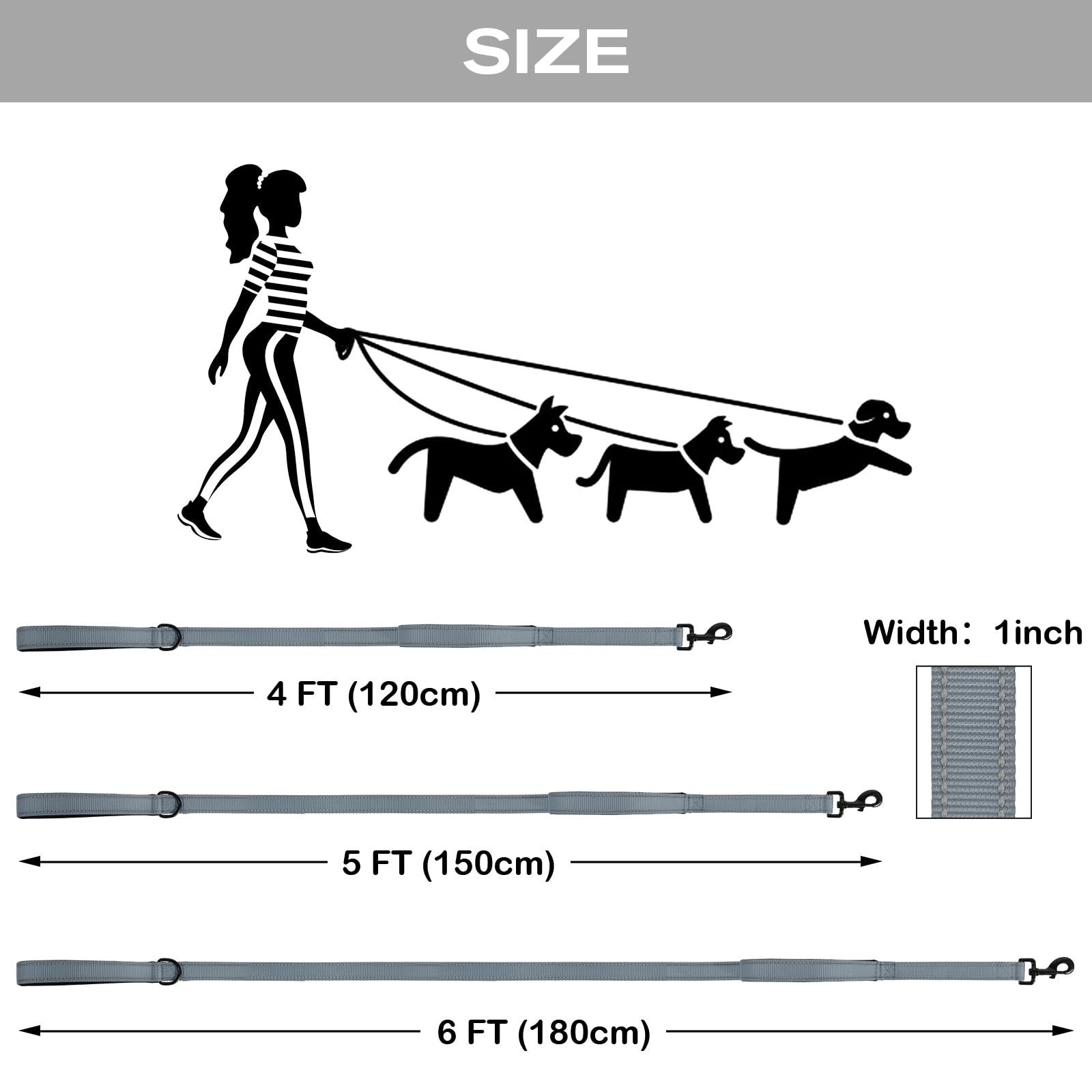 Dual handles, Better Control: Joytale heavy duty dog leash is equipped with two handles, standard handles are used for leisurely dog walking, and traffic handles near your dog's collar are used to control your dog's passage through crowded areas and provide extra, quicker, and more securely control in an emergency. The soft padded handles ensure comfortable grip than ever when your dog pulling for comfort against the wrist