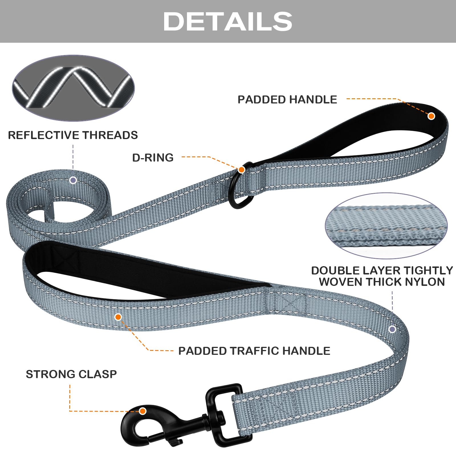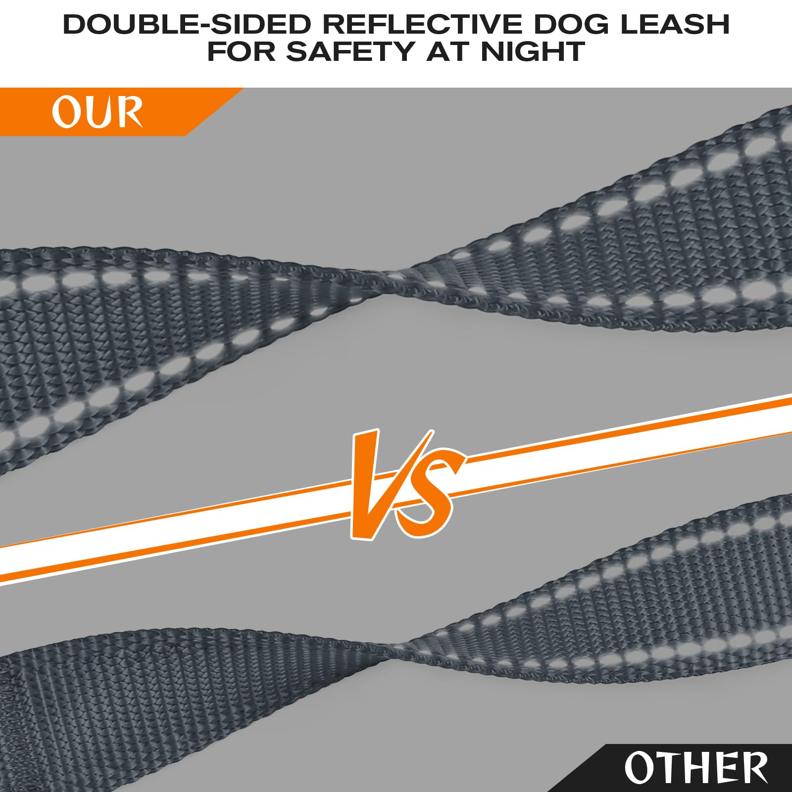 Double-Sided Reflective for Night Safety: The upgraded double-sided reflective leash has reflective stitching on both sides, which is much safer than the dog leash without reflective threading and a single-sided reflective leash. Luminous reflective threading keeps you and your dog safe and visible at night