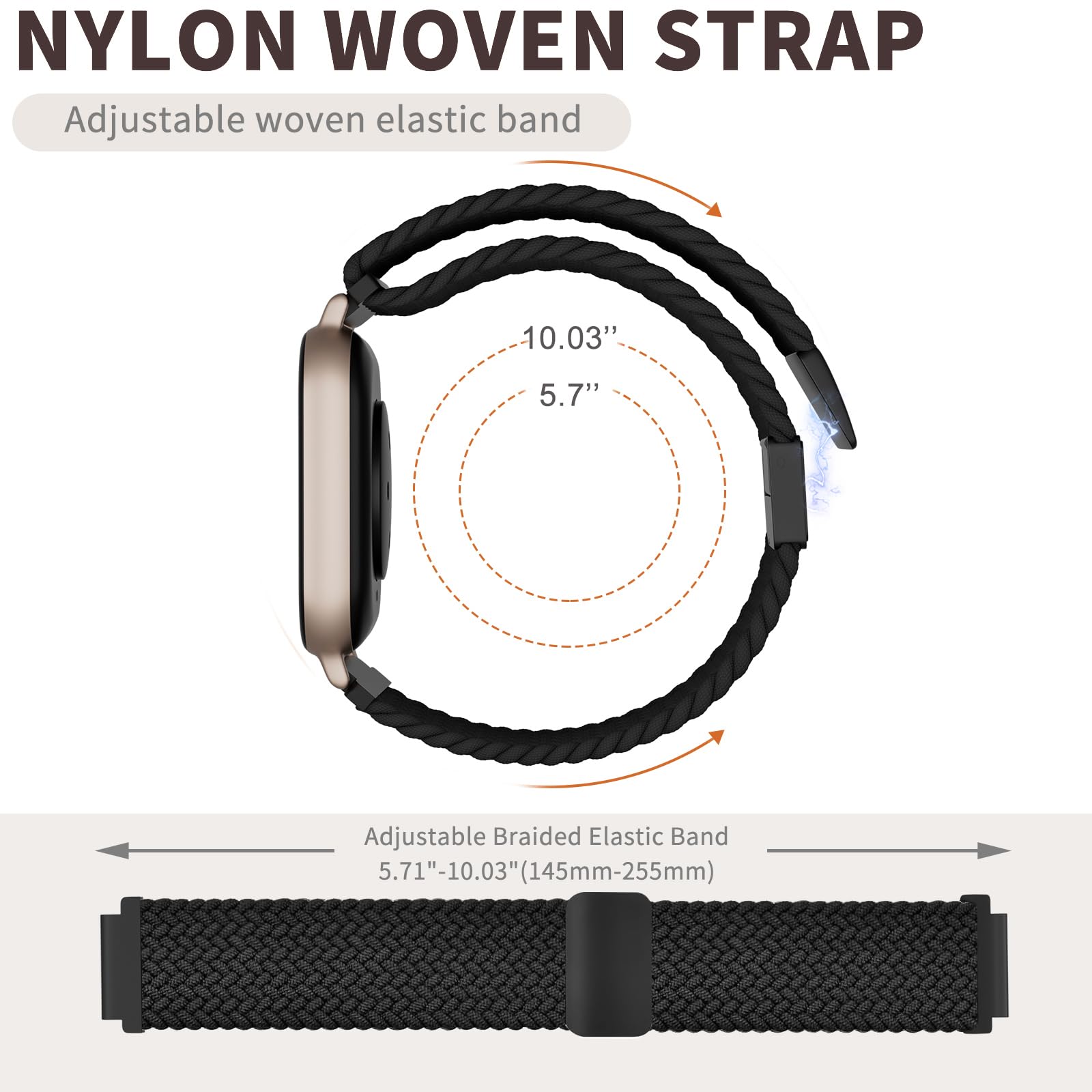 ✅【Premium Material】 - The Sport Loop elastic nylon band is woven of high-quality recycled polyamide material, which is stretchable, soft, breathable, lightweight,durable and washable, comfortable to wear,skin-friendly without any irritation. Perfect for Fitness, Running,Yoga and daily workouts and regular wear.