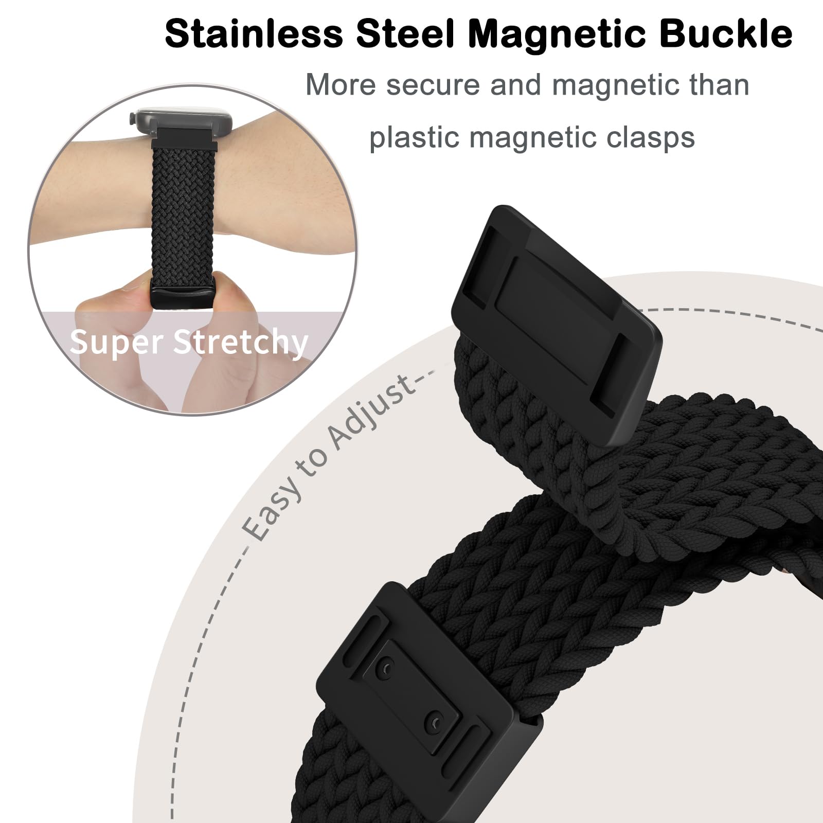✅【Magnetic Clasp】- The band adopt upgraded adjustable magnetic metal clasp design, secure and convenient magnetic clasp makes the band more beautiful and easier to put on and take off. suitable for wrist size 4.8"-9.0"(120mm to 205mm).