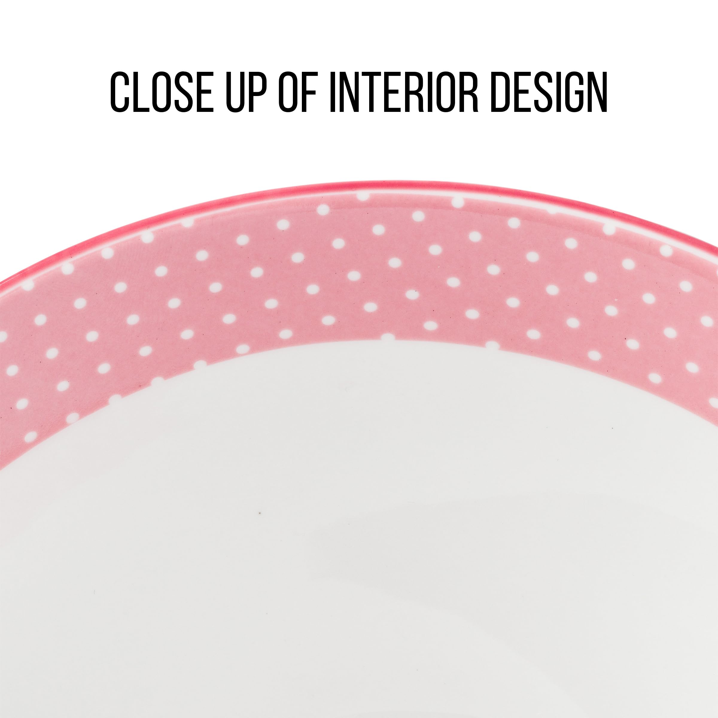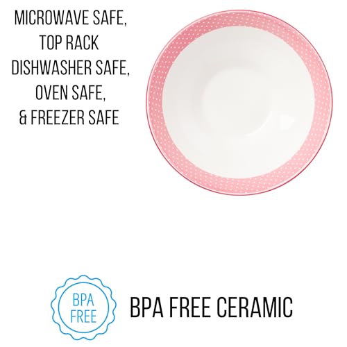 STRAWBERRY SHORTCAKE: Themed bowl features Strawberry Shortcake holding a strawberry. Surrounding the adorable character are strawberries, vines, and flowers. Bowl is white and the interior rim of the bowl has pink and white polka dots.