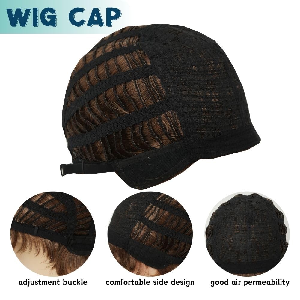 Packaged Included:Breathable bounce rose net cap, average cap size, Adjustable inner cap for most people, adjustment band in the cap changes the tightness, will not fall easily when wearing.Adjustable wig cap(22-24.5 inch) fit most adult.Breathable and comfortable.