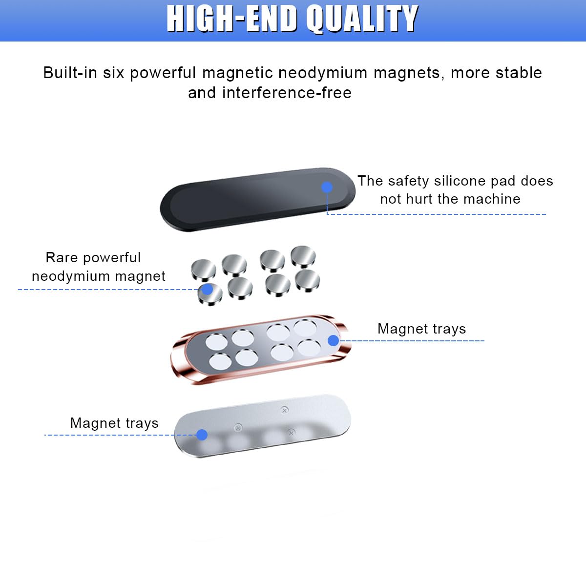 【Simple Design】: The car phone magnet adopts an overall strip design with a concise and elegant appearance. The metal-textured shell has an outstanding texture, which can naturally integrate with car interiors of different styles. After installation, it will not block the air-conditioning vents or look obtrusive; instead, it can add a touch of exquisiteness to the car interior and enhance the overall style.