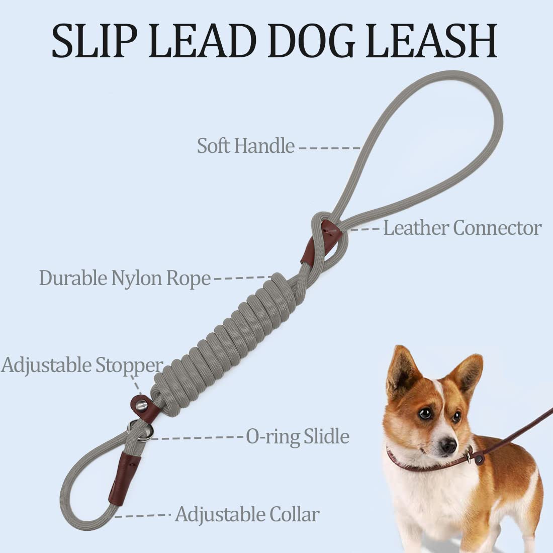 One Size Fit All: 7 feet long, 1/4 inch slip rope dog leash is a perfect balance between freedom and control. Its adjustable loop is ingeniously designed to fit any dog neck size