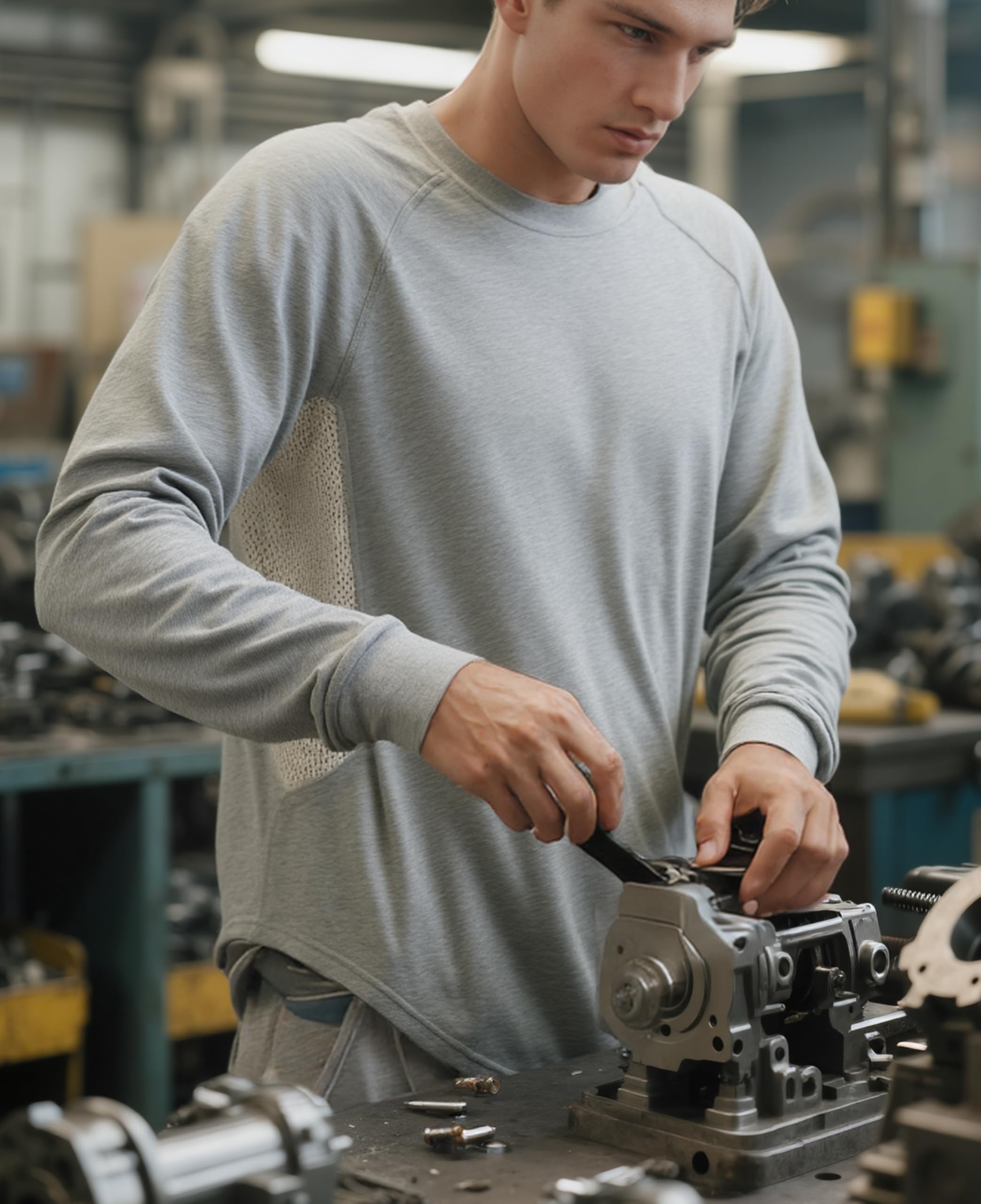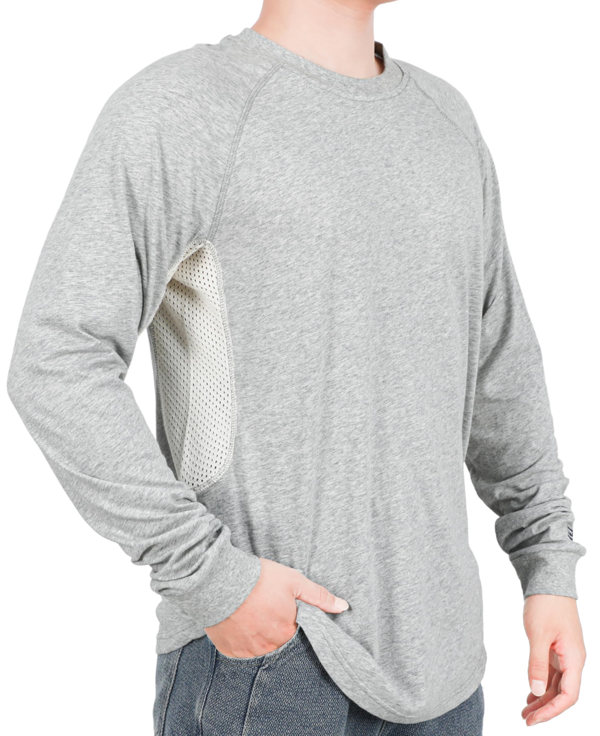 BREATHABLE MATERIAL FOR COMFORT:4oz 100% cotton fire retardant stretch knit EX lightweight smooth fit.Mesh fabric: 6oz natural inherent FR modacrylic cotton,breathable vented underarm design for summer hot days.