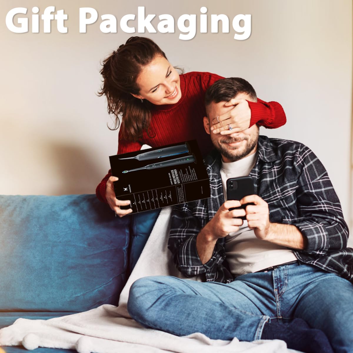 【Powerful Sonic Toothbrush】Ultrasonic motor generates 38,000 micro-vibrations per minute. More whitening effect and deeper reach. Electric toothbrush cleans the surface of your teeth deeper to prevent stains and reduce plaque. Intelligent automatic timer with 30-second intervals ensures that the dentist-recommended 2-minute brushing time is met.4 brushing modes make the most of each brushing session to suit different teeth and gum conditions.