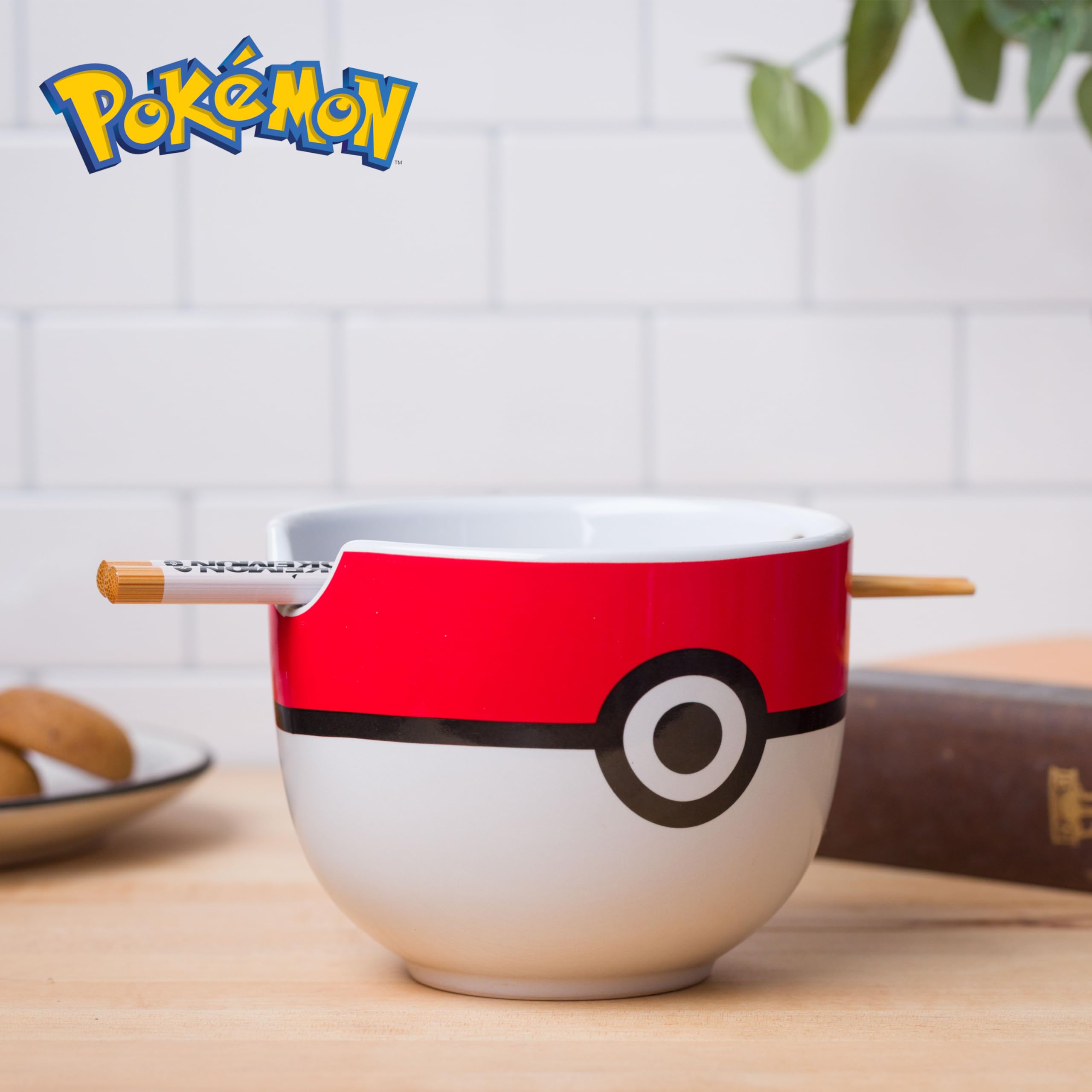 POKEMON POKEBALL: Catch your favorite Pokemon with this Pokeball ramen bowl set. White bowl is designed to look like the Pokeball Pokemon trainer.