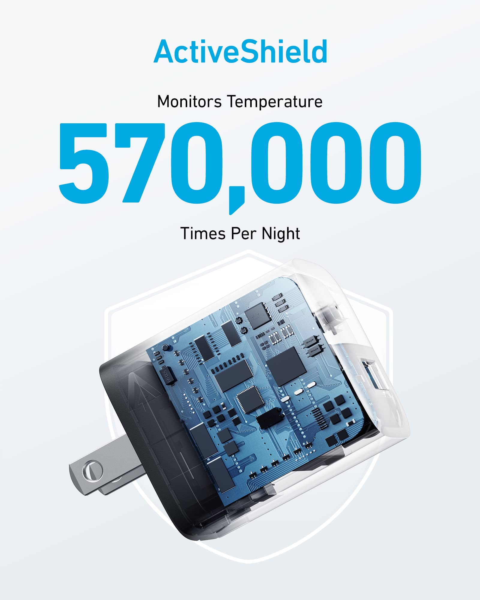 Advanced Safety Measures: Our charger comes with the unique ActiveShield Safety System, offering continuous temperature monitoring and output control. This feature safeguards your devices from potential overheating and overcharging.