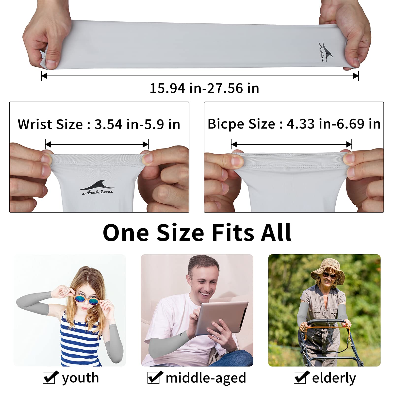 💪Ice Silk & Cooling Sleeve——Achiou arm sleeves for women are made of premium and cooling ice silk. It is smooth, cool and anti-uv because it has better hygroscopicity and breathability than ordinary materials. Performs well in cooling your arms quickly even if you’re doing exercises