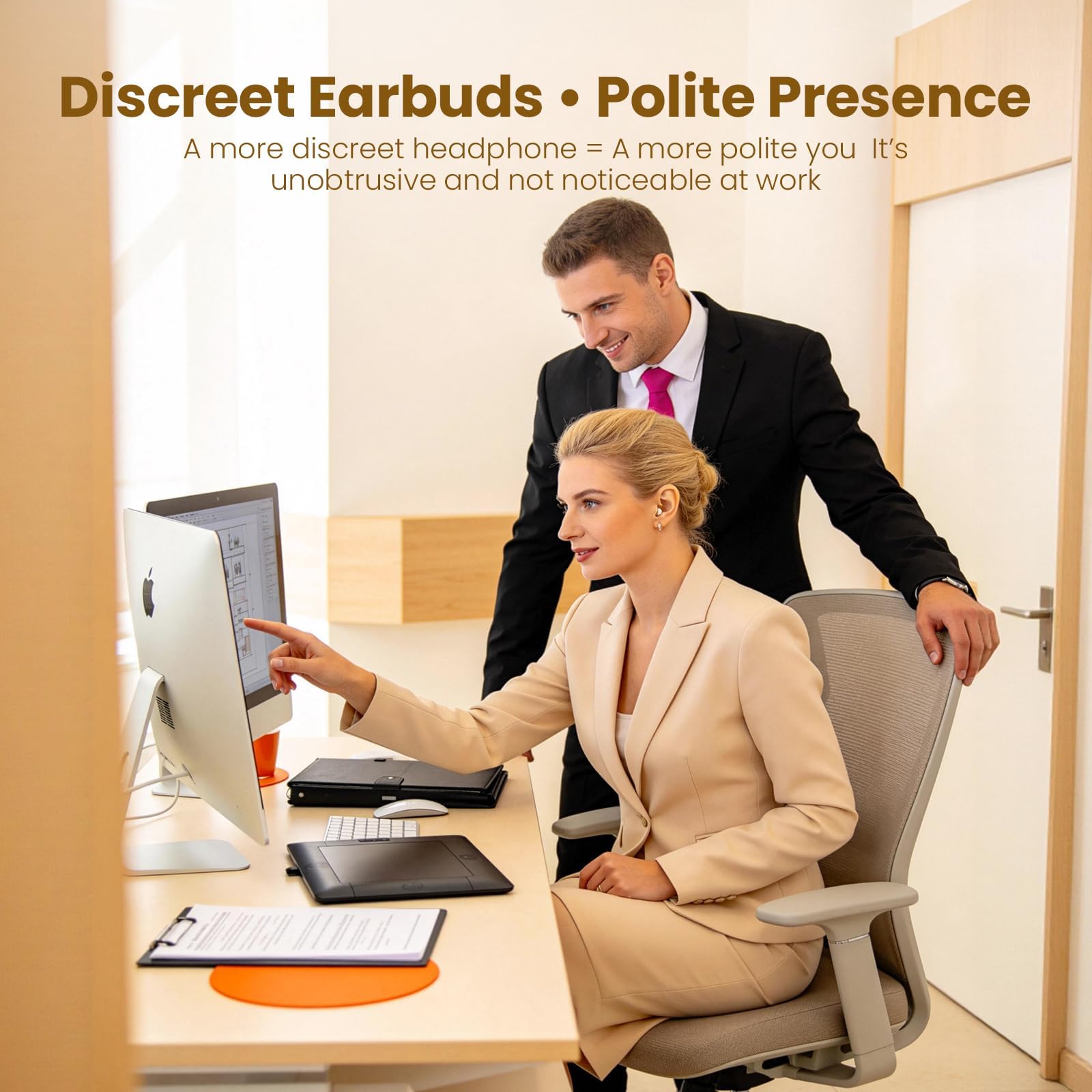 🔋 《One-Step Auto Pairing》 This hidden earbuds headphones for work with one-touch pairing technology. Take out the discreet earbuds for work from the charging case, the micro earbuds can automatically pair with the last connected device again quickly. Mini bluetooth ear buds it’s compatible with most Bluetooth music players.