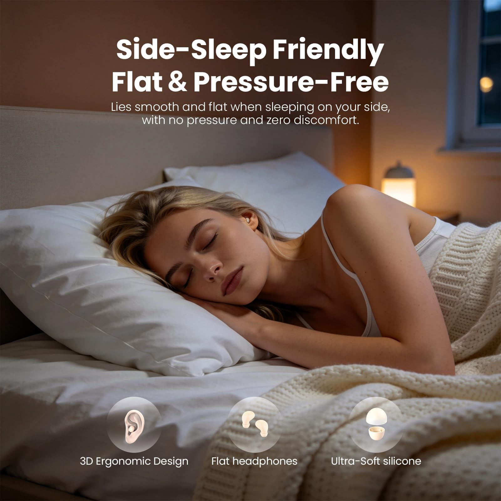 💤 《 Designed for Sleep 》Invisible wireless earbuds combined with proprietary skin-soft silicone eartips and eartip caps, the invisible Sleep earbuds design provides you with a comfortable wearing experience all night, they are sleep ear buds perfect for side sleepers. Even if you toss and turn or sleep on your side, it won't cause any strain on your ears if you wear it for a long time.Note: All sleeping earbuds bluetooth cannot guarantee that they will never fall off until the next morning