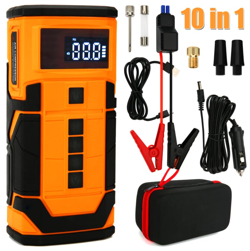Car Jump Starter Portable- This car jump starter has a peak current of 3000 A. It can start 12V vehicles (9.0L gasoline and 6.5L diesel) in minutes. This includes cars, RVs, tractors, minivans, and more. You can put the jump starter on the car to meet the needs of the car.