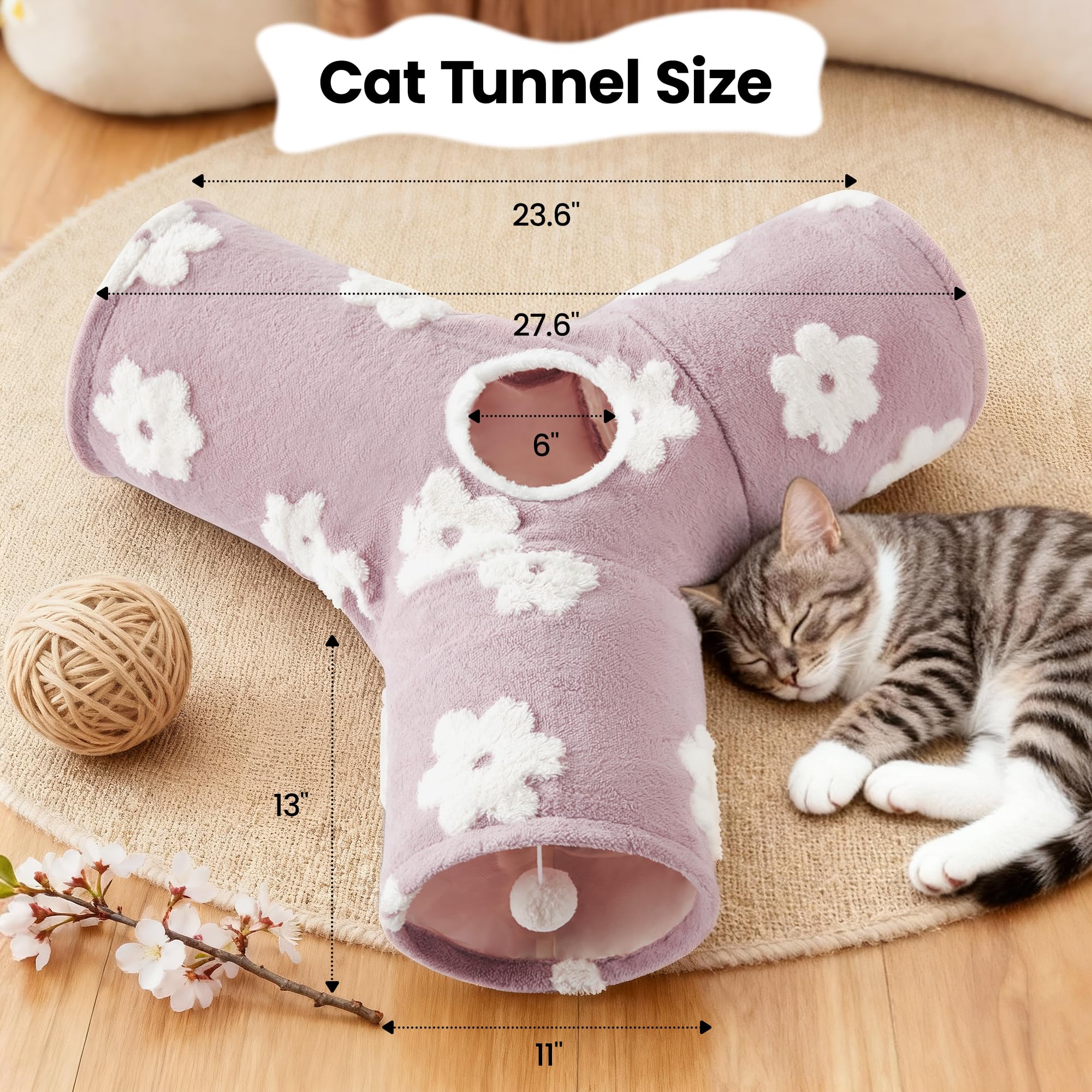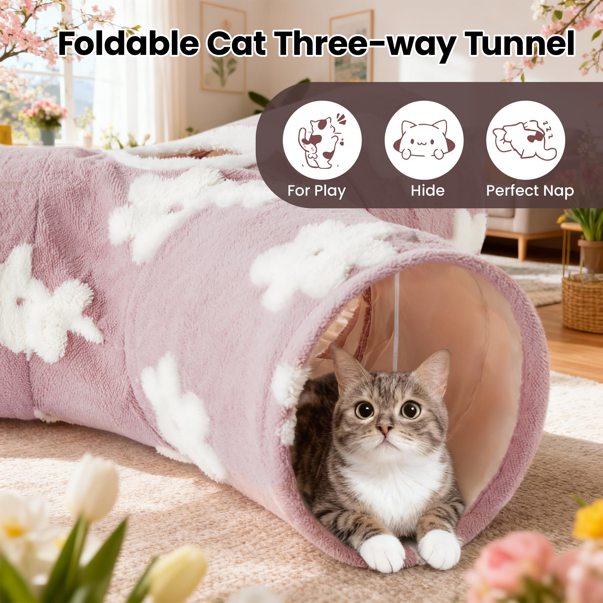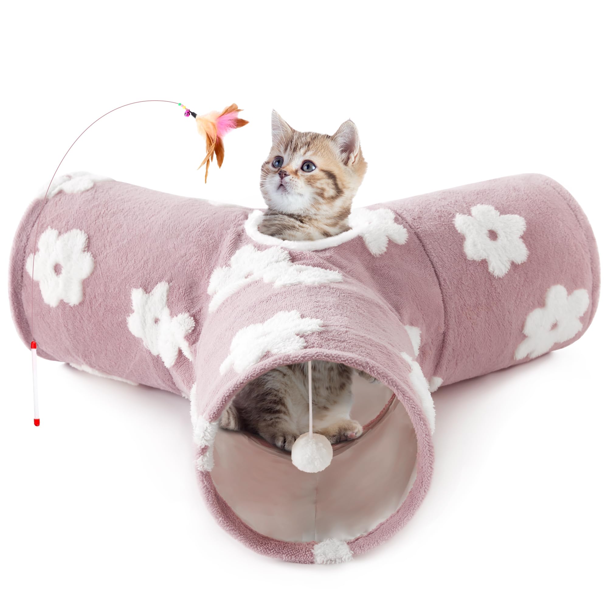 Best Ways to Play: Our cat tunnel with 3 spacious tunnels, peephole & beall toy, this popular cat toy gives your kitty more ways to have fun. Provides hours of exercise & self-amusement.And its furry appearance can decorate your room, giving you a beautiful experience.