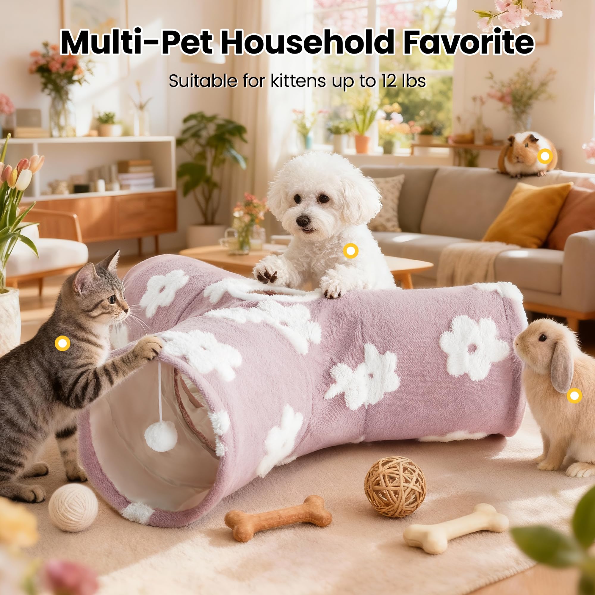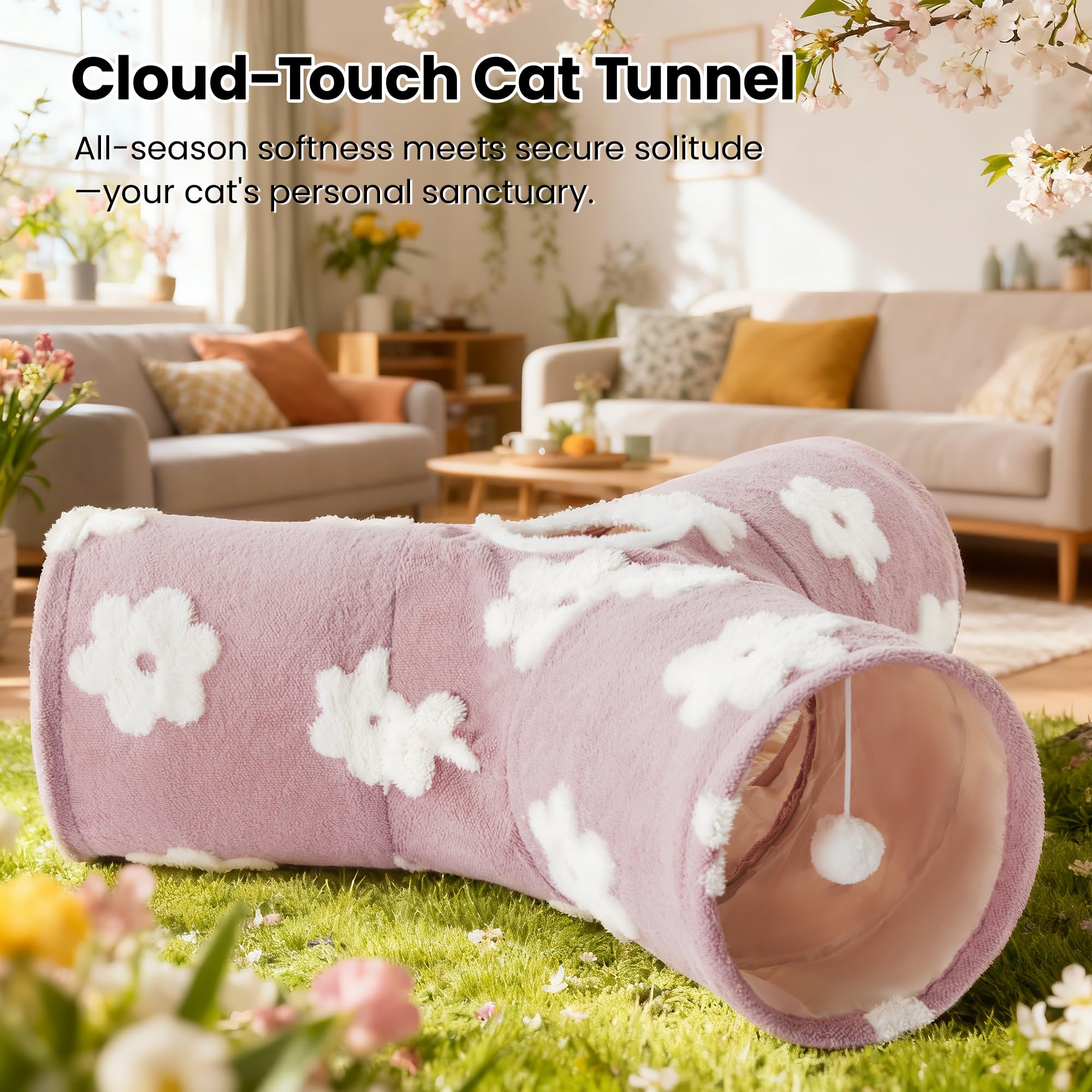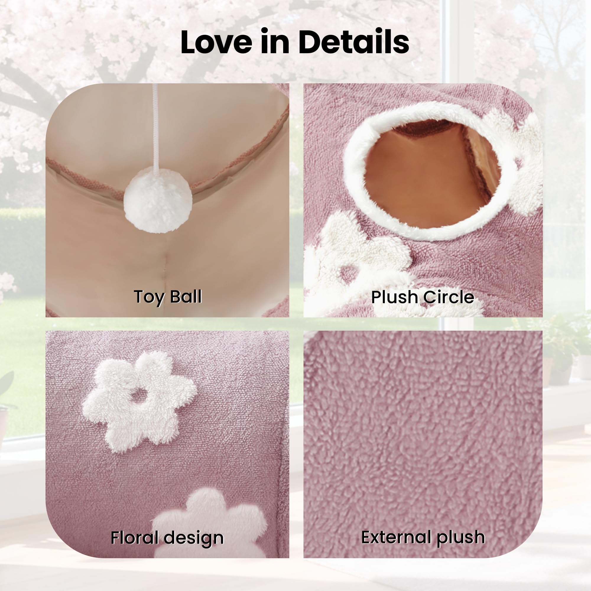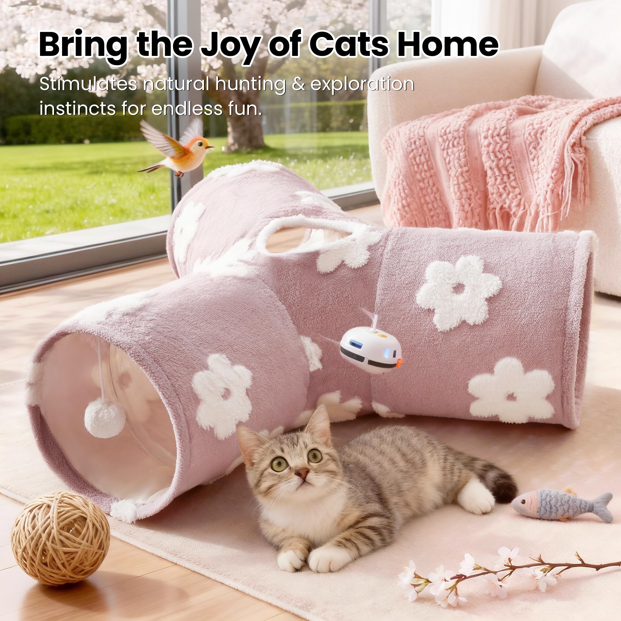 Best Ways to Play: Our cat tunnel with 3 spacious tunnels, peephole & beall toy, this popular cat toy gives your kitty more ways to have fun. Provides hours of exercise & self-amusement.And its furry appearance can decorate your room, giving you a beautiful experience.