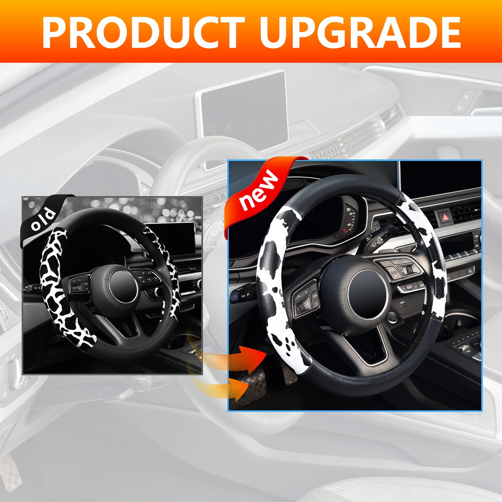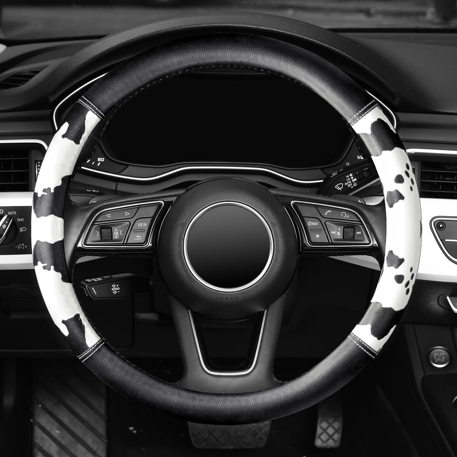 Fashionable Design: Compared with other steering wheel covers, this cow steering wheel cover not only brings you excellent tactile and visual effects, but also increases friction to prevent steering wheel from slipping.so it will keep your hands dry by preventing sweat during hot weather
