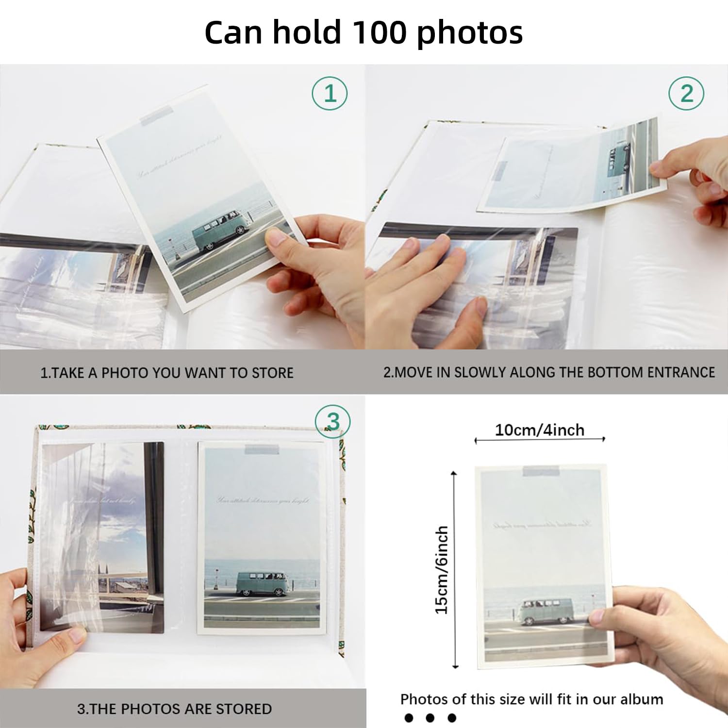 【Small Capacity】Hold 100 pockets in total. This album contains 50 individual pages with 2 slip-in pockets, opens like a book for easy viewing. Our photo album is perfect for 4" x 6"(10.2 x 15.2 cm) photo size.