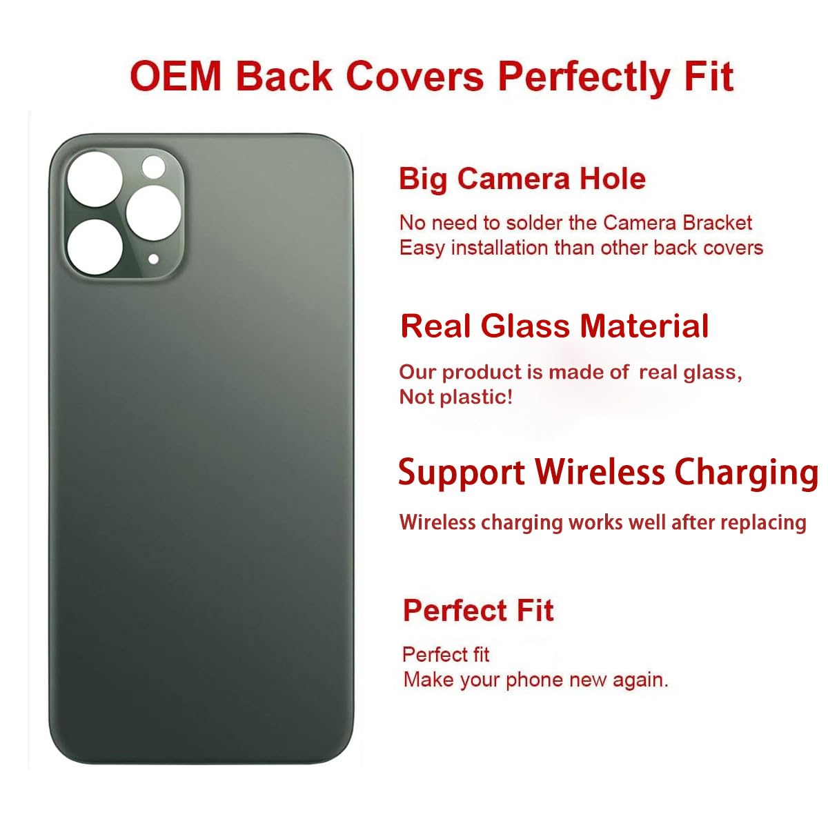 【Bigger camera hole】No need to remove the camera lens as the new back glass is with a bigger camera hole. You can install the new back glass replacement directly after removing the old broken glass. It is much easier for you.