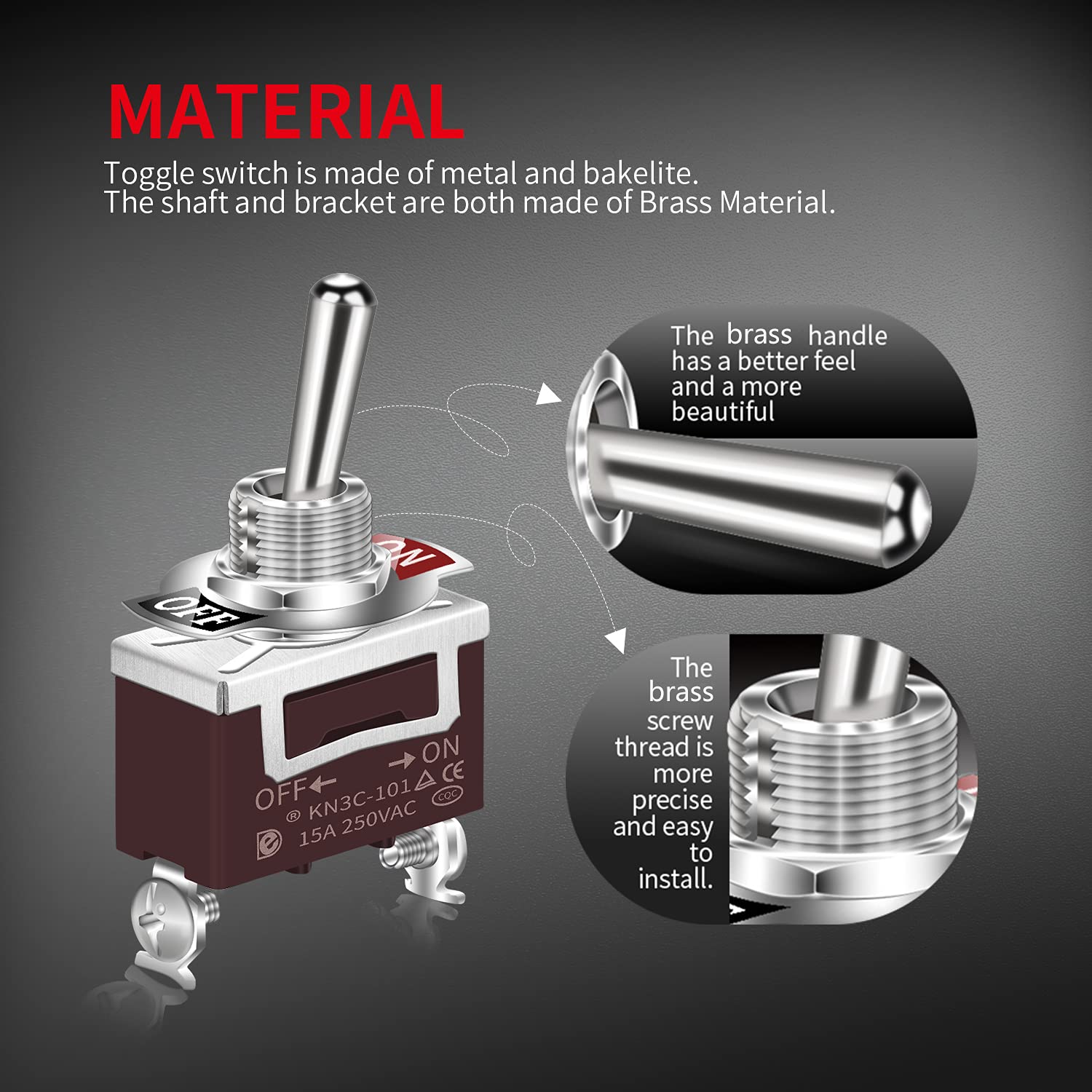 Feature: The waterproof toggle switch is made of metal and bakelite. The shaft and bracket are both made of Brass Material. Switch with M12X0.75 weatherproof Boot Cap Cover, can effectively protect the switch. Delicate appearance with strong Construction. Look chic and high-end on your equipment.