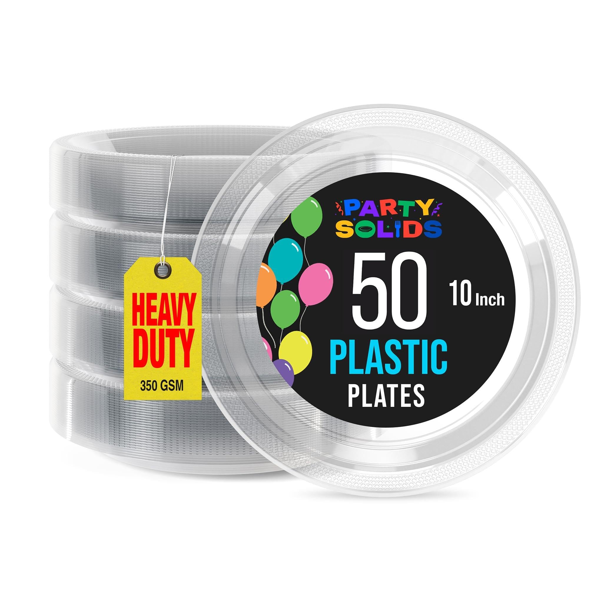 Includes: Each pack comes with 50 clear 10-inch dinner plates. These plates may be used as dinner plates or cake plates and also make a great use as picnic supplies. Having these will complete your plastic dinnerware collection.
