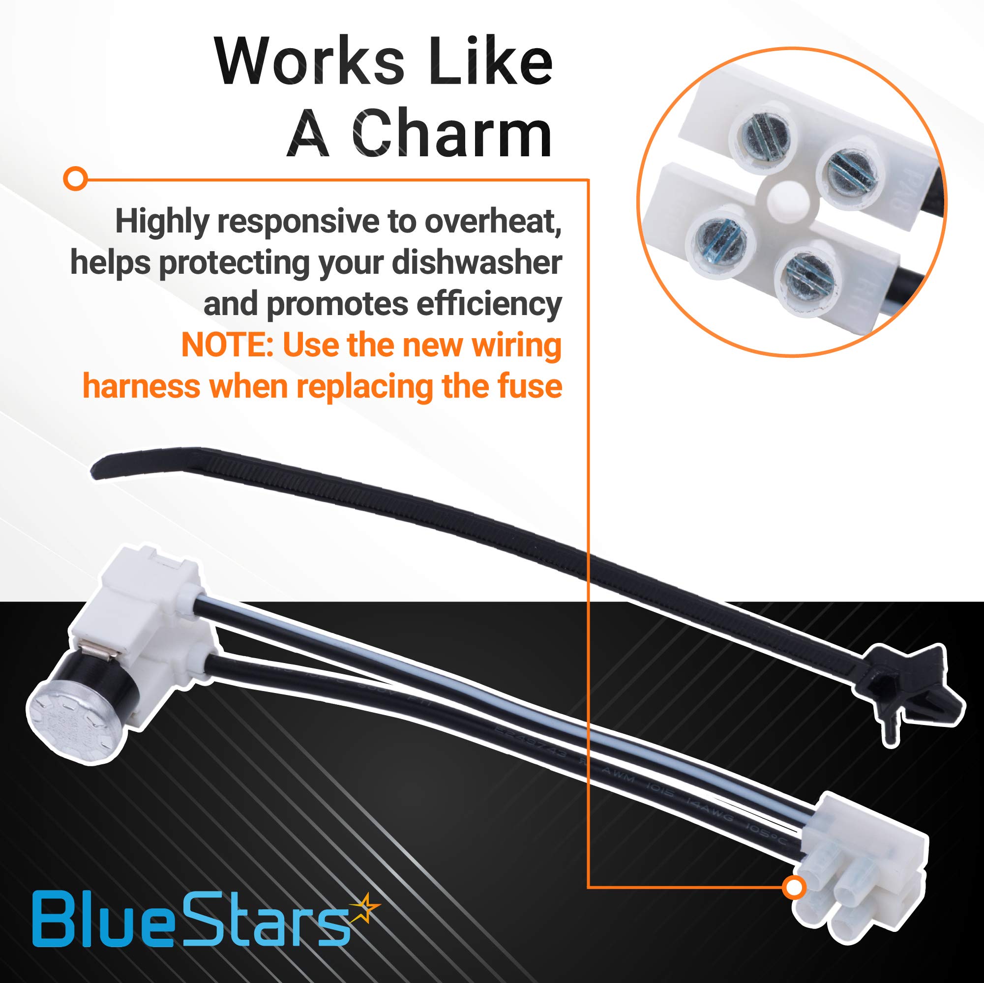 EFFECTIVE DISHWASHER PROTECTION: BlueStars W10258275 Bimetal Thermal Fuse acts as a safety mechanism that interrupts the electrical circuit to the heating element if the internal temperature reaches certain points, protecting the dishwasher from overload and ensuring efficient energy for each cleaning cycle. Check and replace your old thermal fuse to fix those symptoms: Not draining | Dishwasher will not start | Overheating.