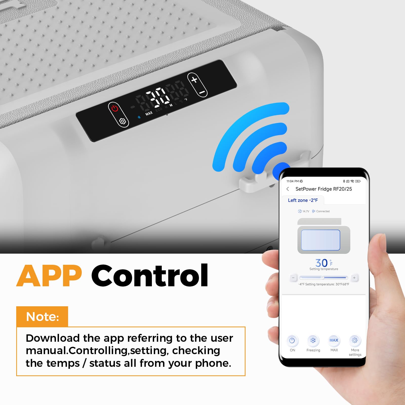 Easy Control and Led Display: You can switch between modes of the car fridge with the control panel or remotely via your phone. The Setpower 12 volt refrigerator that doubles as a protable fridge or freezer. (Temp. Range from 68 ℉ to -4 ℉)