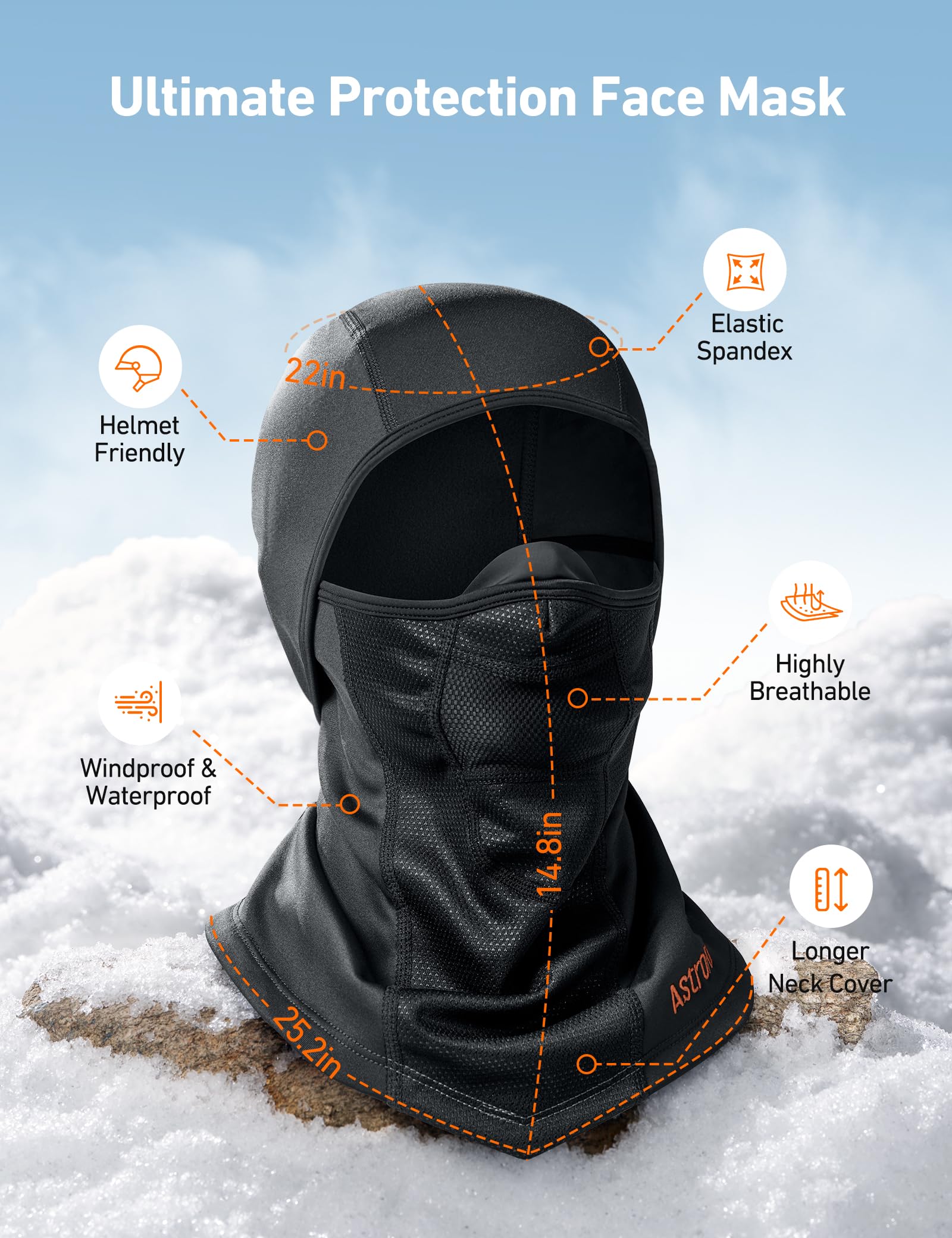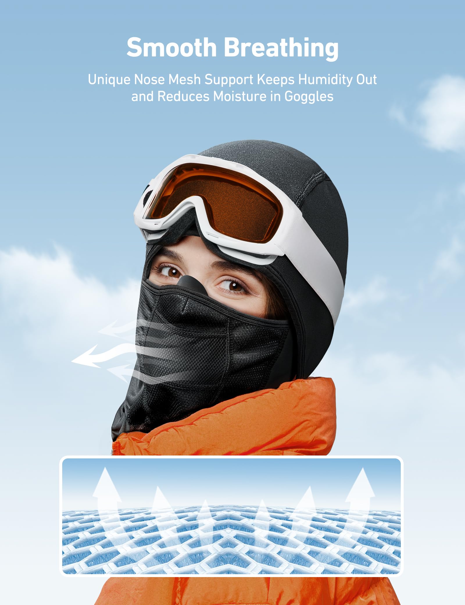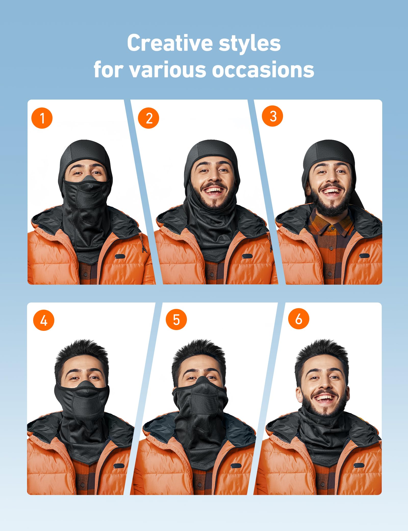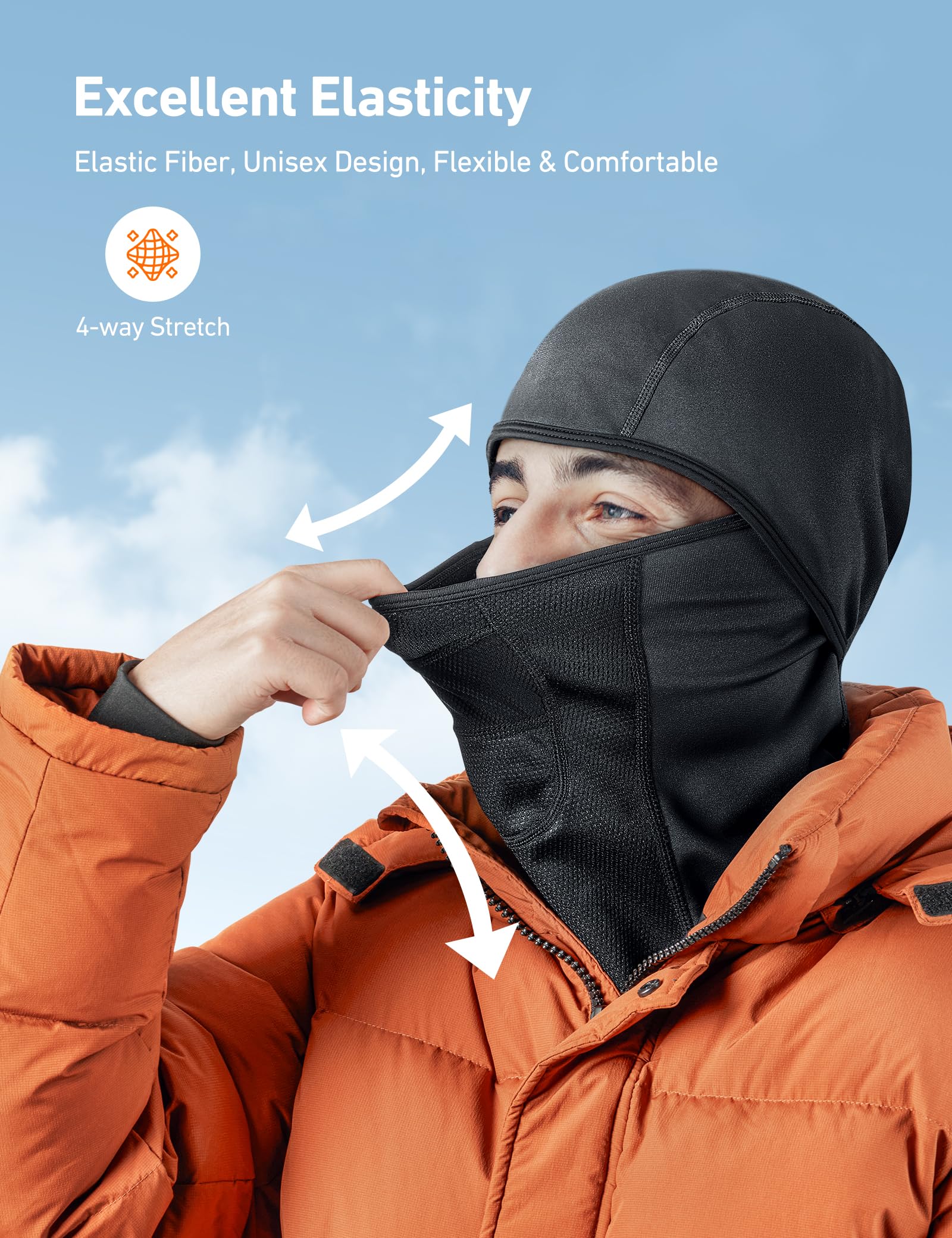 ULTIMATE WINDPROOF PROTECTION: The ski mask gives you the option to cover your entire face and features an extra-long neck section for superior wind and cold protection; The face and neck areas adopt 3-layer composite wind & water-protection fabric, blocking out all the cold elements while keeping the heat in.