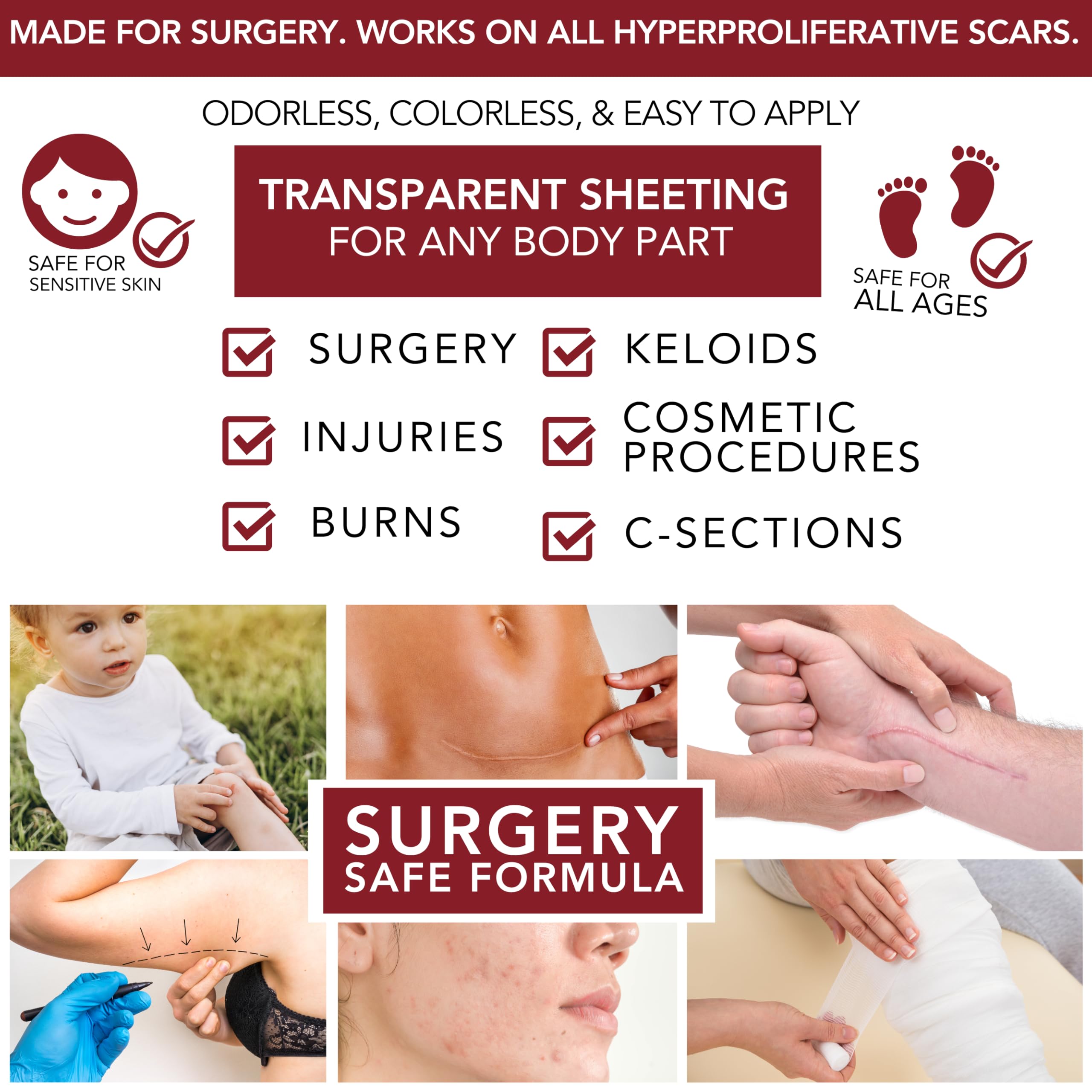 PHYSICIAN-MADE SURGERY-GRADE SCAR GEL SHEETING | CONTAINS ONLY SCIENTIFICALLY PROVEN INGREDIENTS to support new & old scar removal and skin repair. No additives, placebo or harmful ingredients.