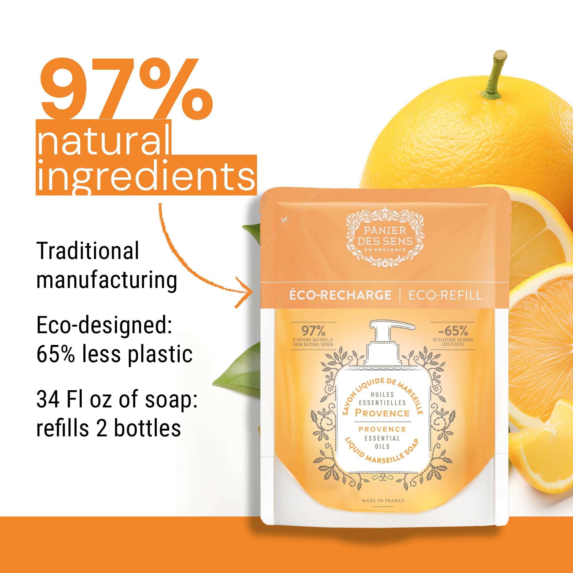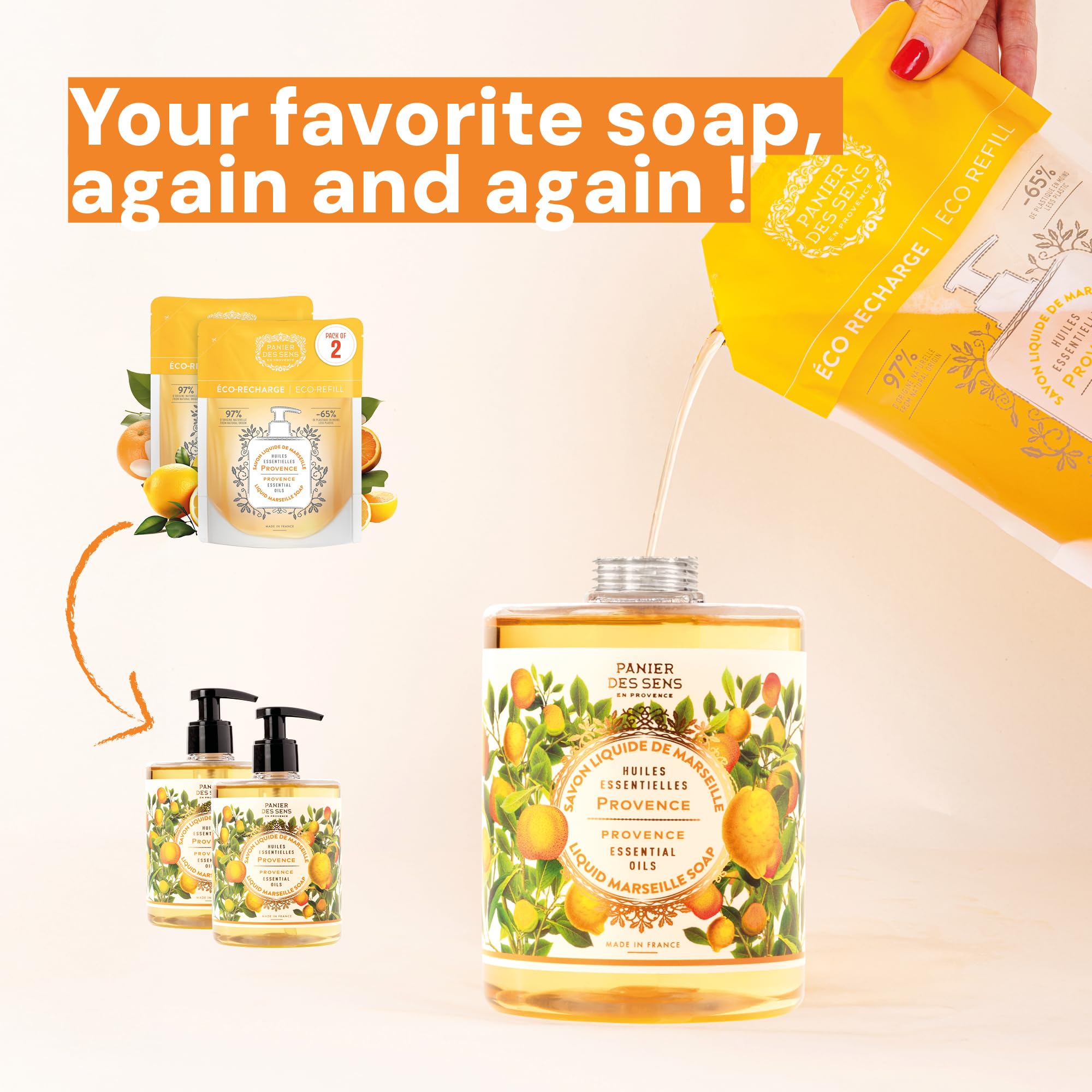 🥥 MOISTURIZING HAND SOAP REFILL - Our formula based on coconut oil + provence (lemon and cypress) essential oil makes this softsoap refill highly moisturizing, without drying out hands. Coconut oil, rich in fatty acids and vitamin E, deeply moisturizes and nourishes. The essential oil embodies well-being and introduces you to aromatherapy.