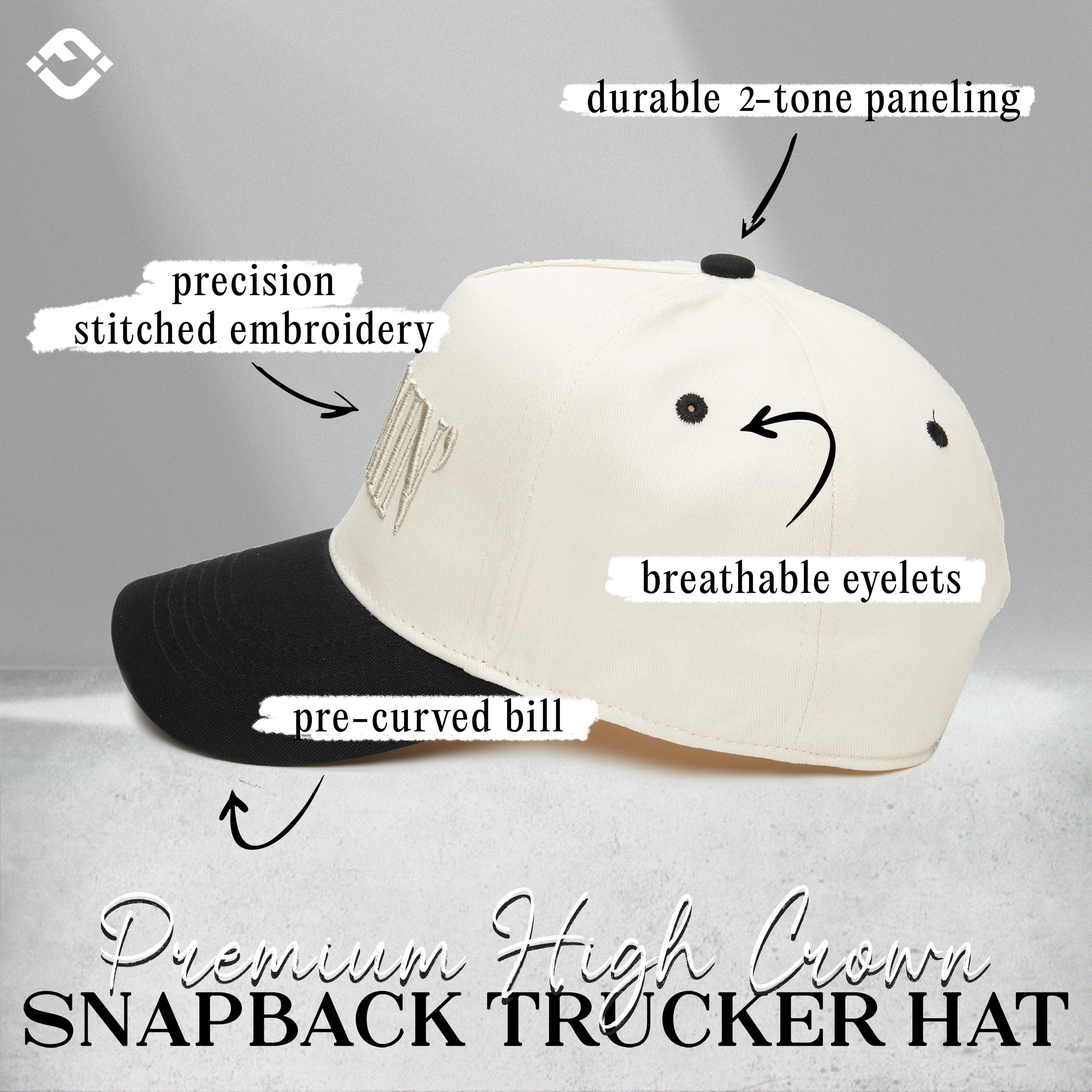 PREMIUM QUALITY: Made from a durable blend of 35% cotton and 65% polyester, this embroidered hat is lightweight, breathable, and comfortable for all-day wear. Its structured fit with a curved brim ensures it holds its shape, making it a top choice for beach trucker hats for women and mens trucker hats alike.