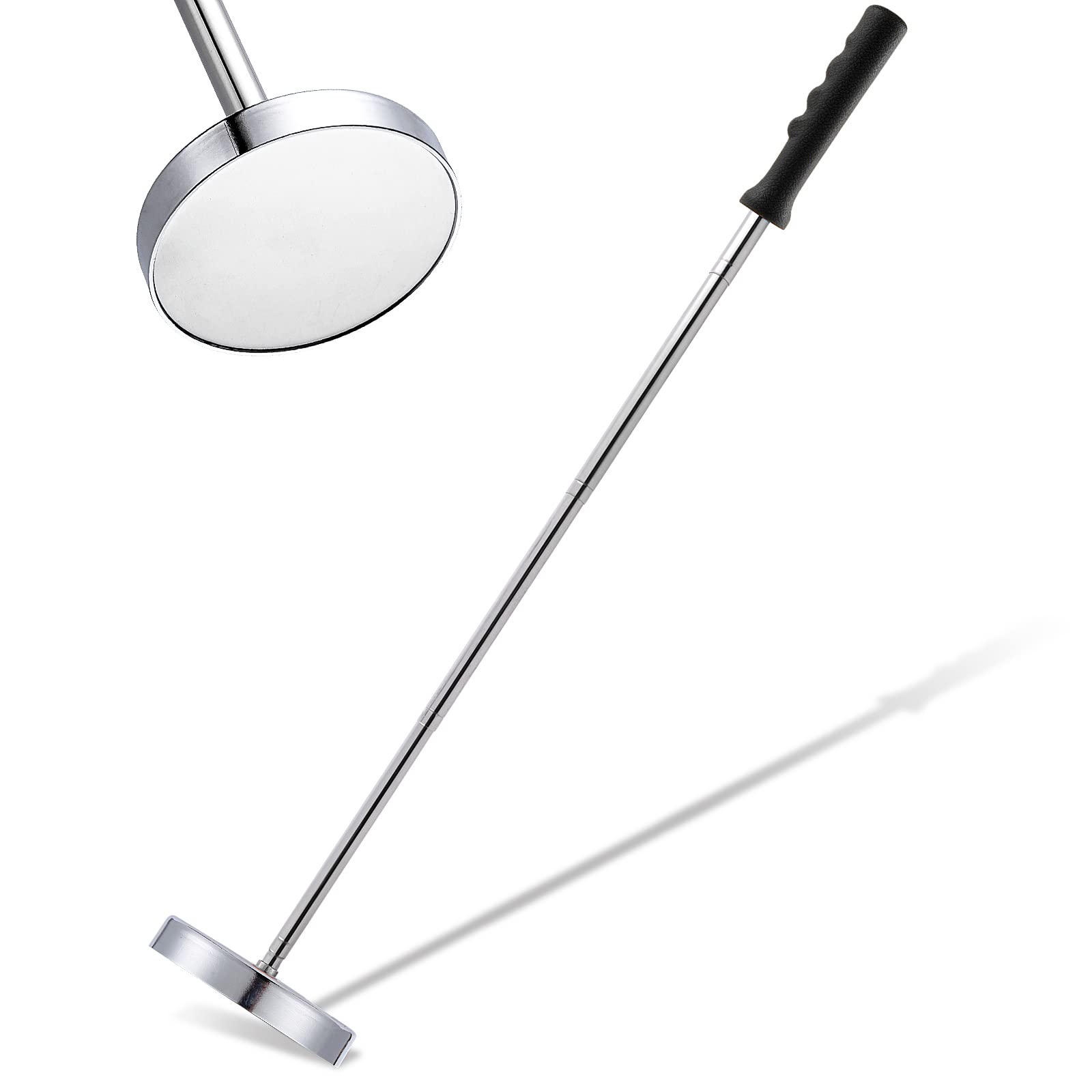 17-Inch Rolling magnetic sweeper aims to retrieve nails, screws, and all black metal objects from the floor Maintain a load capacity of up to 8.8 pounds, protecting you from debris and sharp metals. Use this handle magnetic sweeper to keep your construction site clean and tidy. With an ultra wide cleaning range, the large rectangular magnet of this 17 inch sweeper magnet covers more ground and absorbs more metal. Due to the wide coverage of the cleaning vehicle, you will save time and effort during the cleaning process. 3-inch wheels with rubber pedals: Side mounted wheels with steel lining and rubber pedals can be operated indoors or outdoors. Just push and pull this rolling magnet sweeping cart like a carpet sweeping cart, or push the broom on different terrains. A retractable handle with adjustable height, adjustable in length from 15 inches to 38 inches, helps to avoid back bending. Lightweight materials and strong appeal make it the most cost-effective rolling magnet cleaner. Push or pull it under the furniture, passing through the workshop floor, driveway, mud, grass, and gravel.