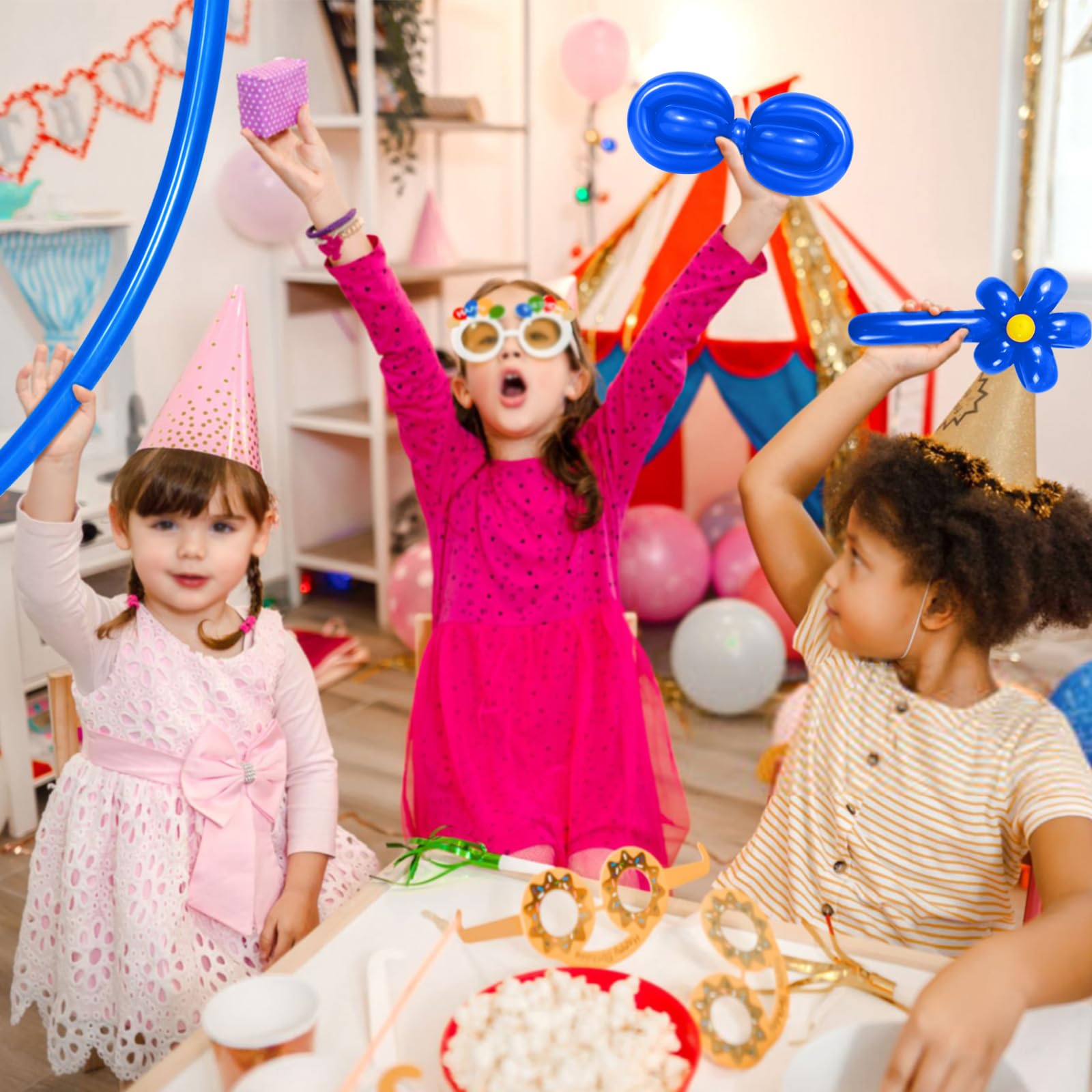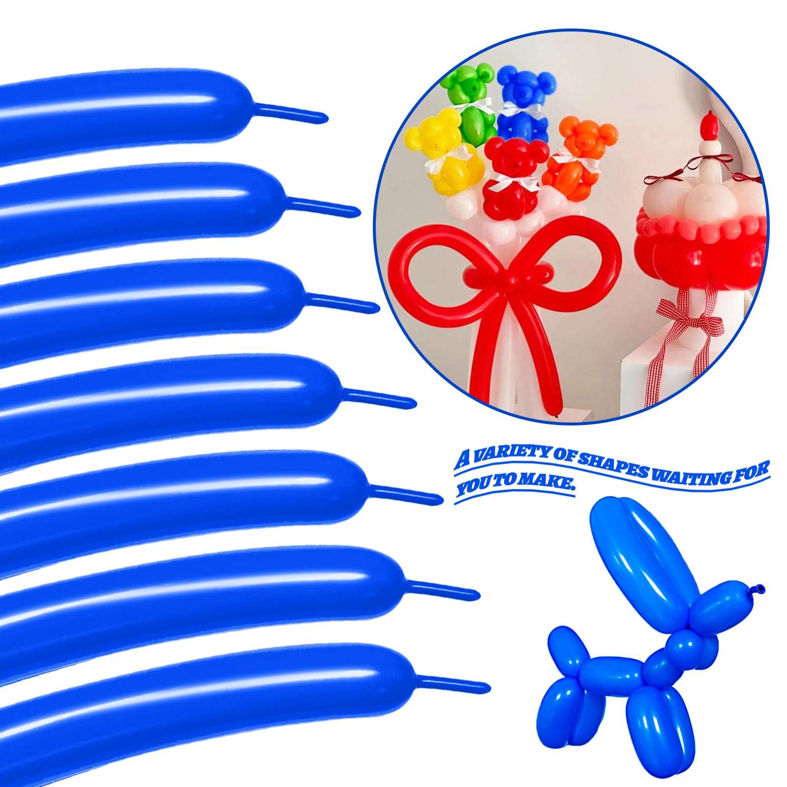 Long balloons assorted colors are suitable for kids party decorations, balloon animal art will fill their childhood with endless fun.