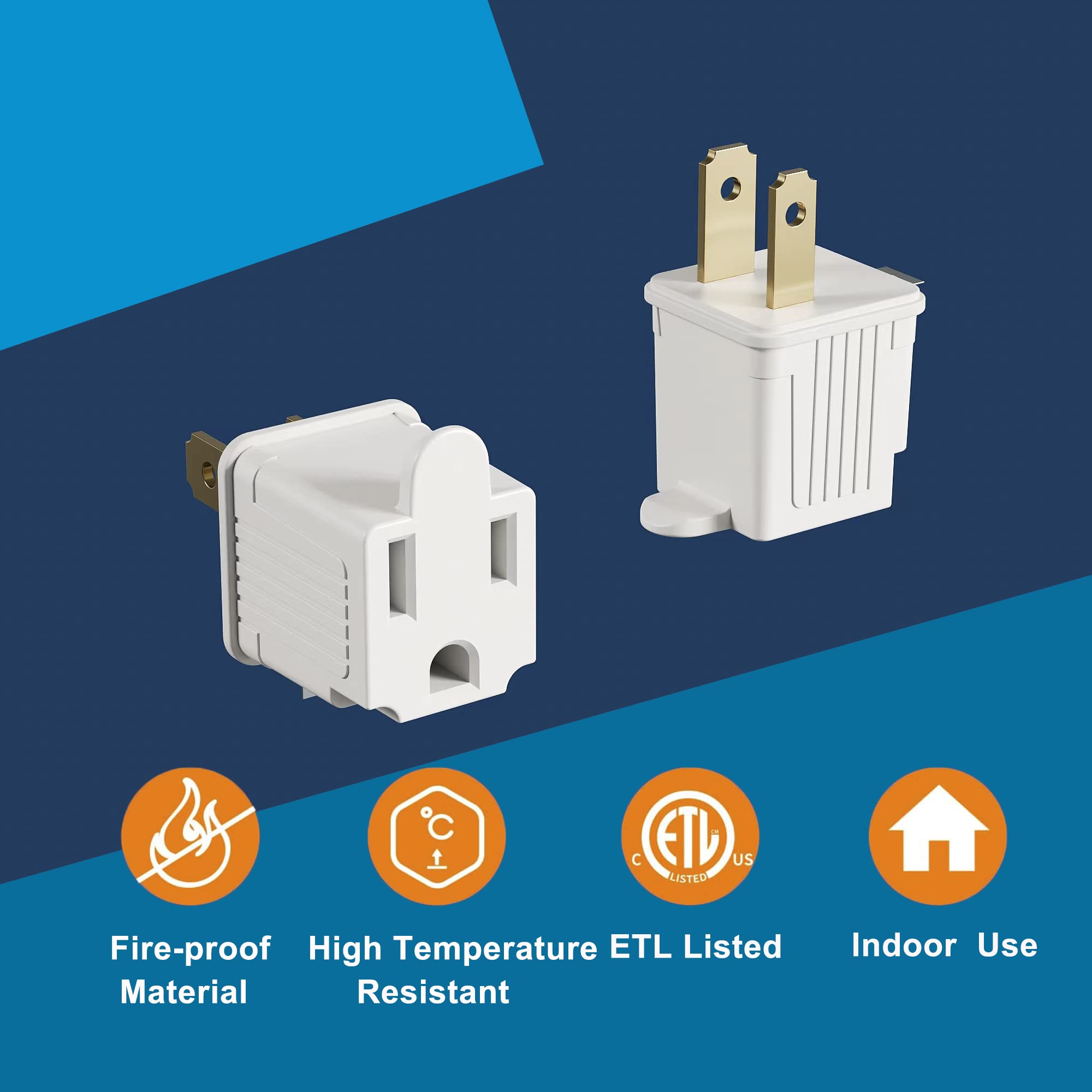 3 Prong to 2 Prong Adapter - The 2-pin to 3-pin outlet adapter converts an ungrounded extension cord into a grounded-pin socket AC outlet